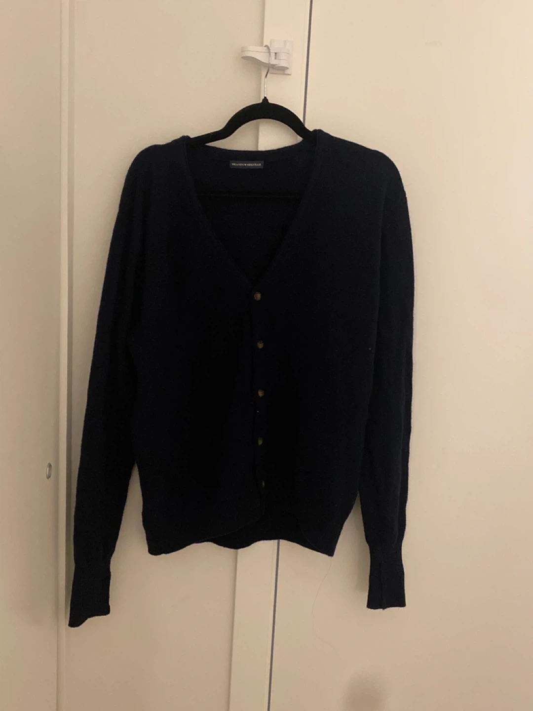 Selling a Brandy Melville cardigan in navy blue! It's in great condition and ready for a new home. Perfect for layering or wearing on its own. The material is soft and comfy!
