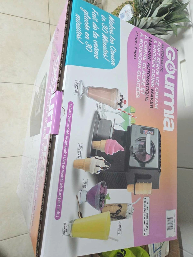 I'm selling a new Gourmia Automatic Soft Serve Ice Cream & Frozen Drink Maker. It's a fantastic addition for creating delightful frozen treats at home. This 2-litre capacity machine makes ice cream in just 30 minutes and features 6 preset options to easily whip up your favourite desserts. It has a topping dispenser, topping warmer and cone holder and keep cold function, so you can make ice cream for the whole family! * 2 Litre Capacity * Makes Ice Cream in 30 Minutes * 6 Presets * Topping Dispenser * Topping Warmer * Cone Holder * Keep Cold Function If the listing is still up, yes it's still available!