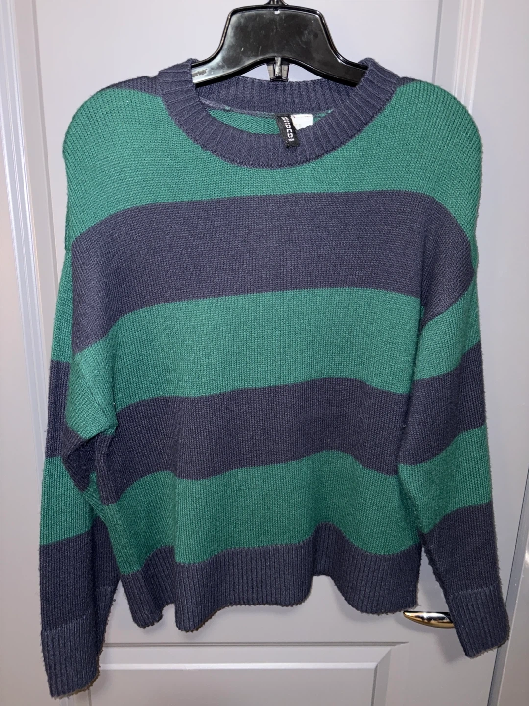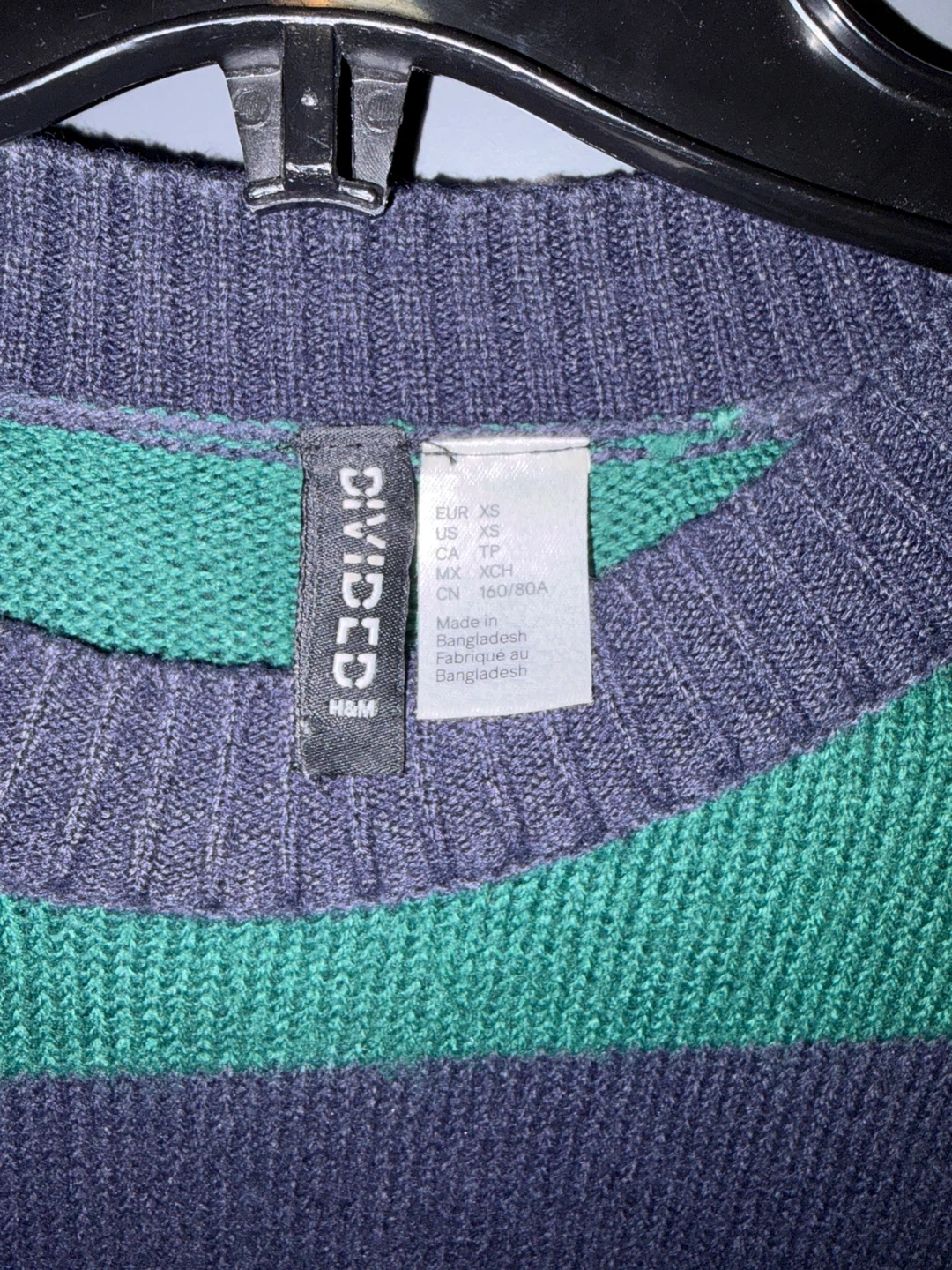 Cozy H&M Divided sweater with a fun striped pattern! It's a size XS and in great condition. Perfect for layering or wearing on its own!