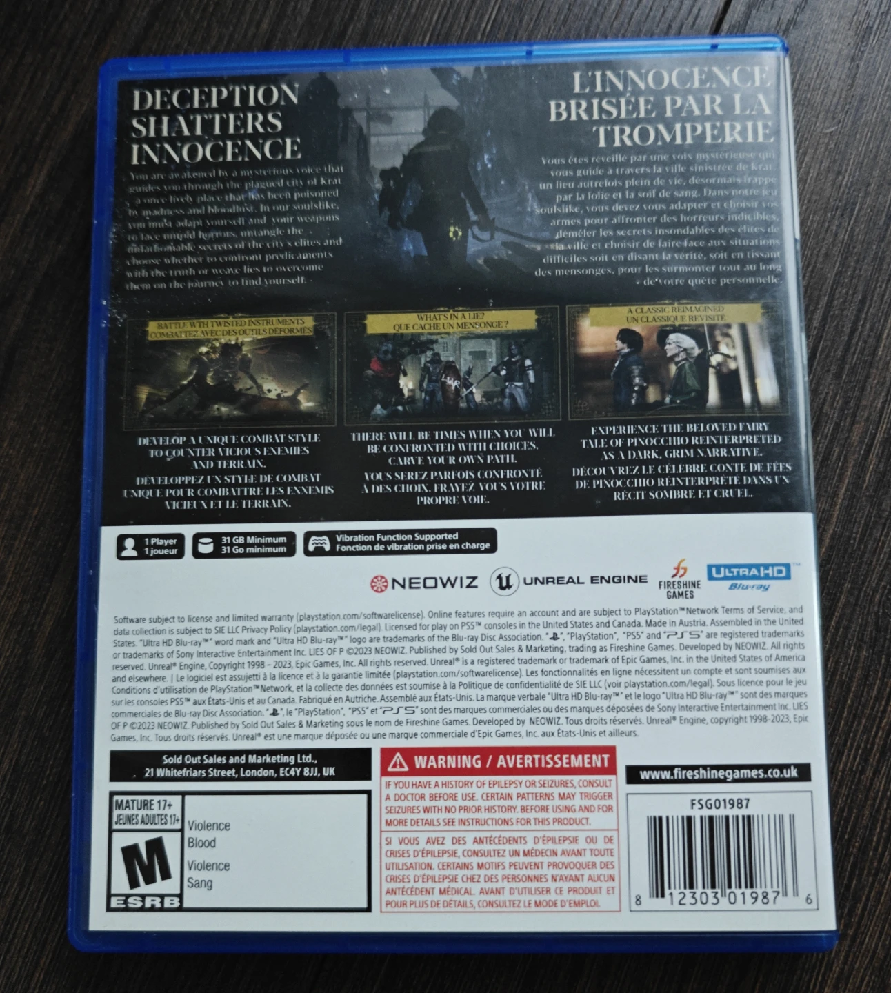 Selling my copy of Lies of P for the PlayStation 5 (PS5).