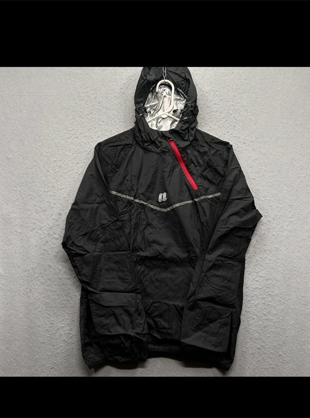 Selling a black rain sauna jacket from Running Night. New and perfect for those early morning or late night runs! The jacket has a hood and a red zipper accent. It says size 2X but it.