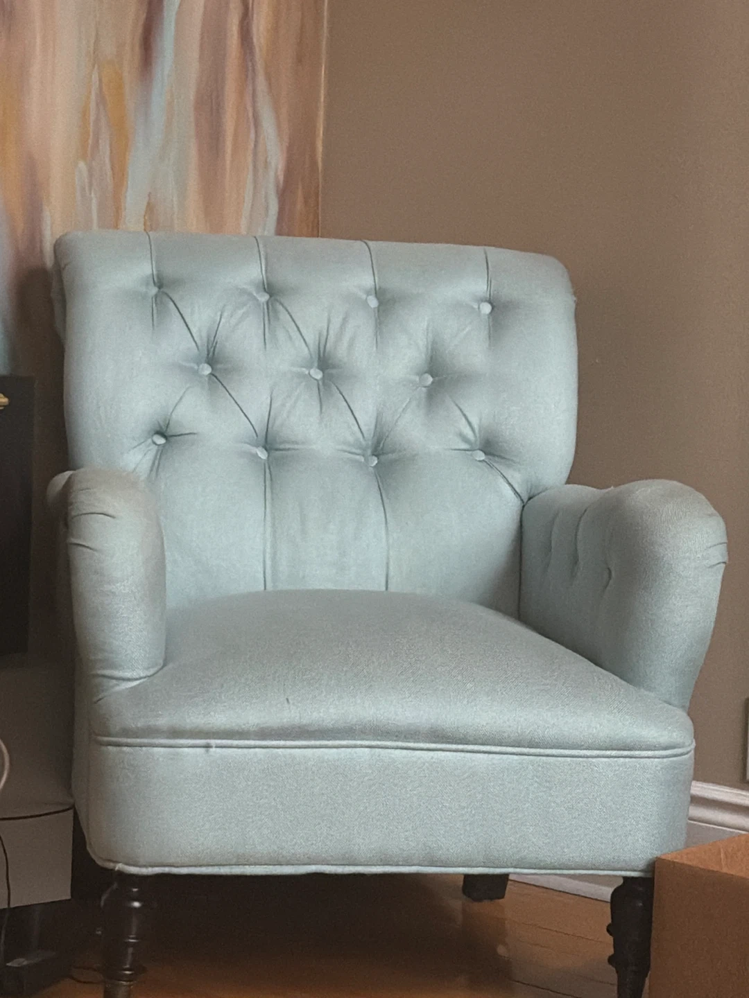 Buy & SellLight Blue Tufted ArmchairLight Blue Tufted Armchair$70Selling a comfy light blue armchair. It has a classic tufted design and is in good condition. Perfect for adding a touch of elegance to any room!ConditionGood0 chats·1 favorites·36 viewsSELLERMinaJefferson200 reviewsWHERE TO MEETCheck Location