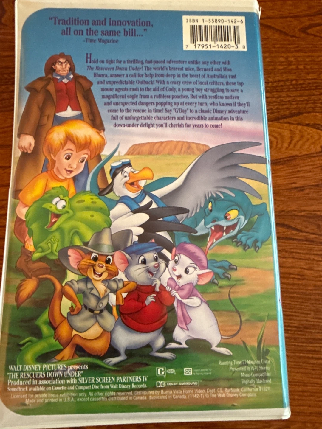 Buy & SellWalt Disney's The Rescuers Down Under VHSWalt Disney's The Rescuers Down Under VHS$5Selling a VHS copy of Walt Disney's "The Rescuers Down Under"! A classic movie for any Disney collector or anyone looking for a bit of nostalgiaConditionLike newWHERE TO MEETBayview Village Shopping CentreView MapSELLERverifiedMichael BBayview Village38428 reviews0 chats·0 favorites·2 views