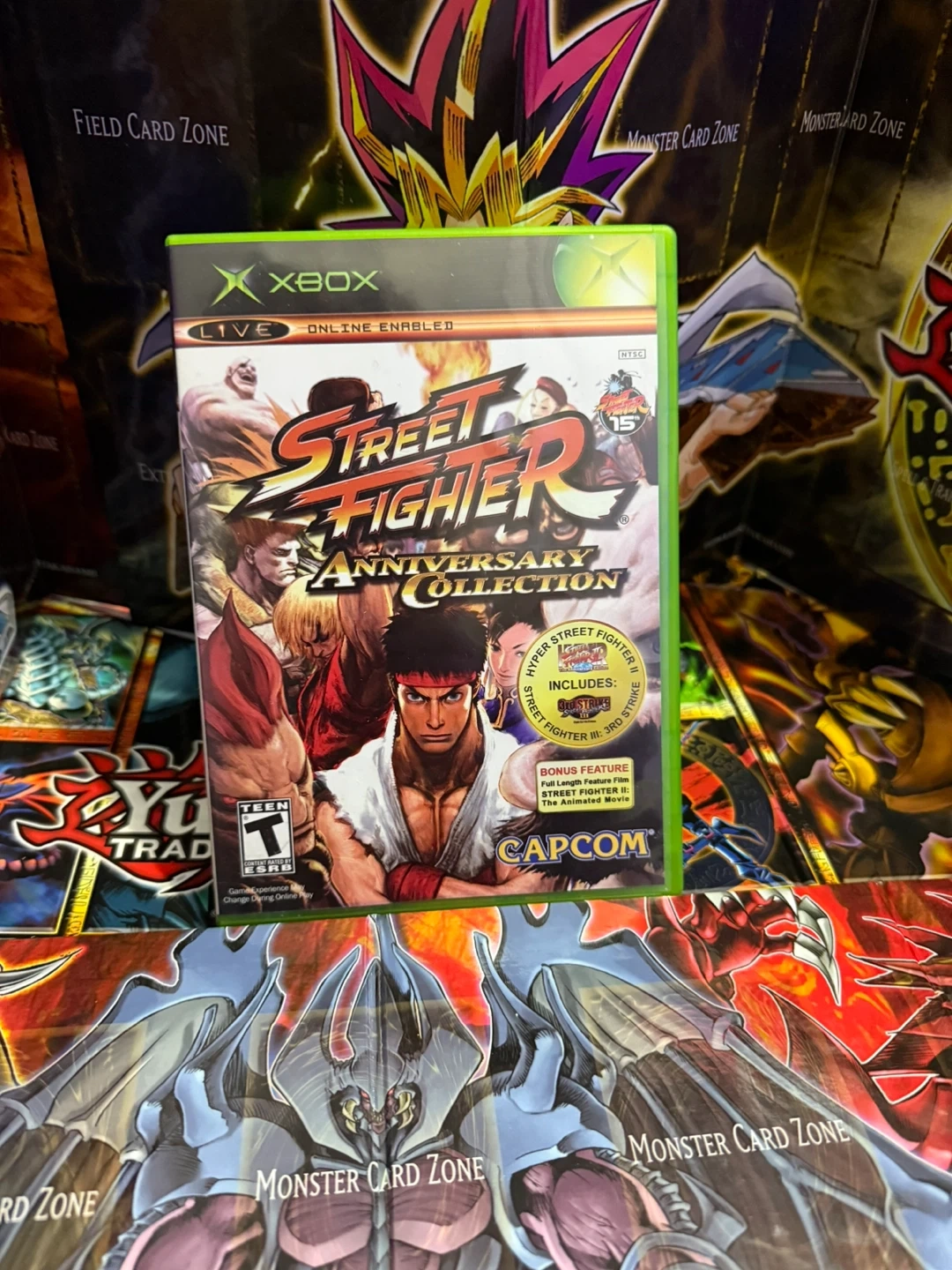 Selling Street Fighter Anniversary Collection for the original Xbox! This compilation features Hyper Street Fighter II and the arcade smash hit Street Fighter III: 3rd Strike. It's a great way to experience these classic fighting games. Mix and match characters from different Street Fighter games to create countless dream matches! Fight friends all over the world with Xbox Live