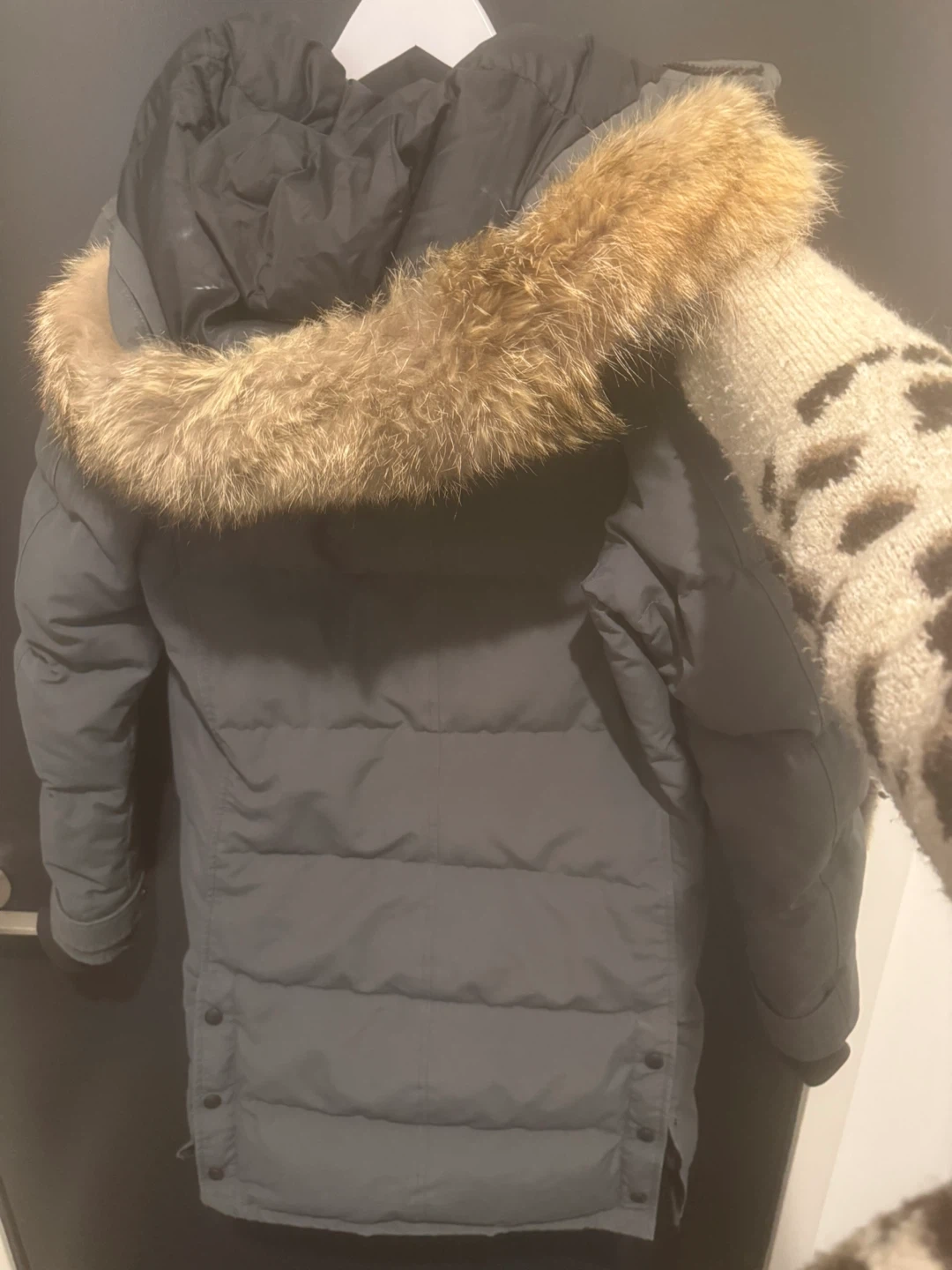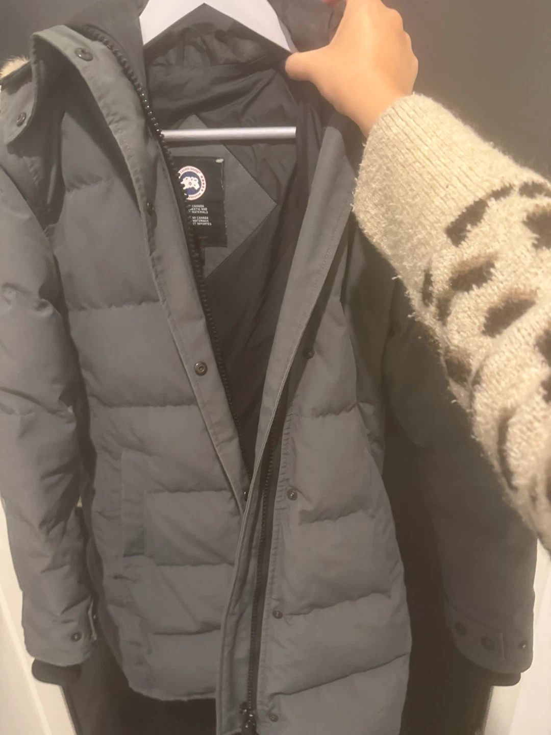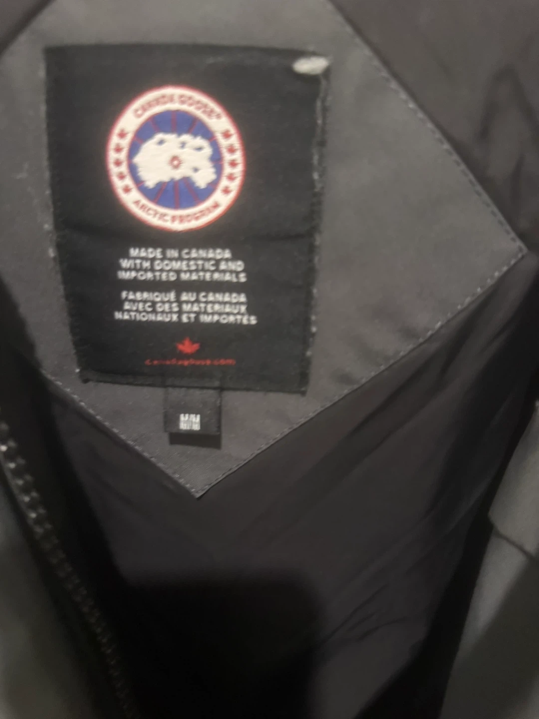 Selling a Canada Goose jacket in size M. It's in great condition and ready for the Canadian winter! The jacket is a stylish grey colour and is made with domestic and imported materials