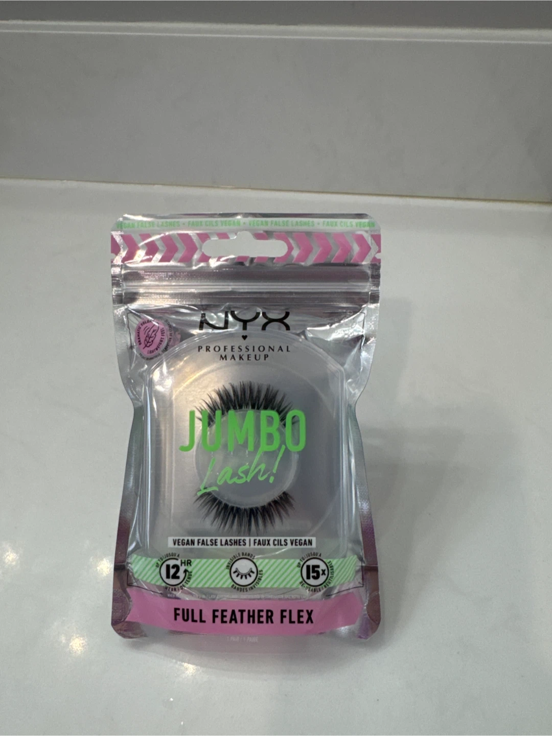 Selling a pair of NYX Jumbo Lash! Full Feather Flex vegan false lashes. They're ultra-comfortable, provide a light volume, and have invisible bands. Plus, they're reusable up to 15 times!