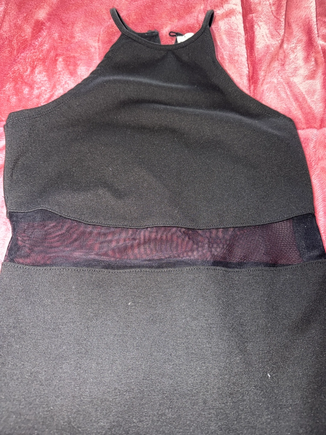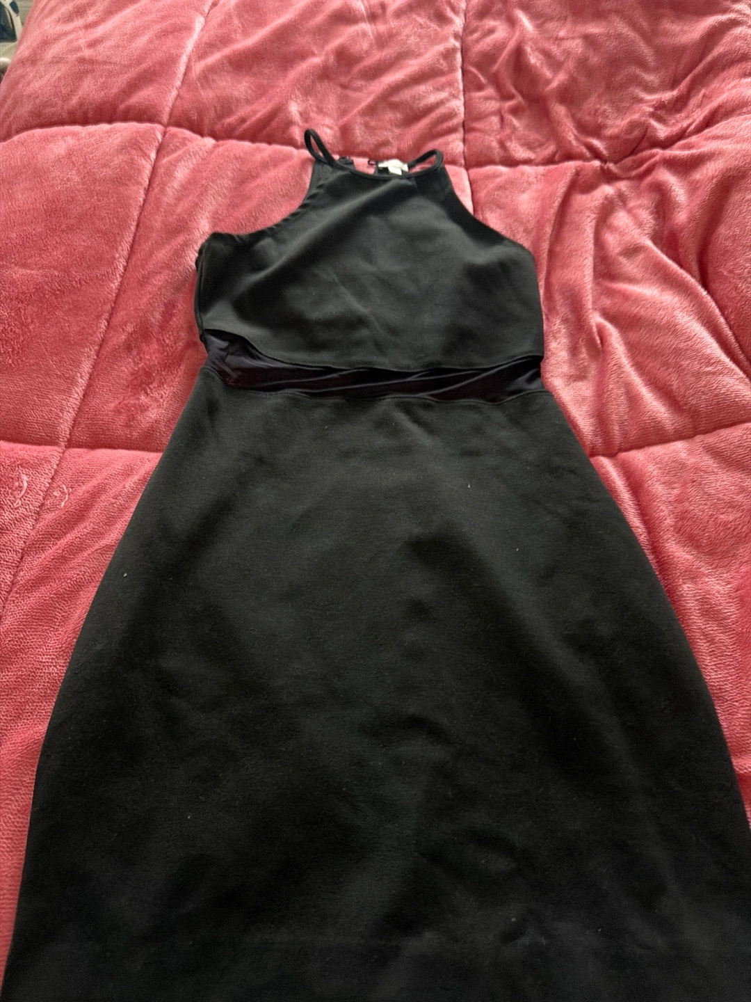 Selling a cute black dress from Dynamite! It's a size medium and features a stylish design with a mesh panel. Perfect for a night out or a special occasion!
