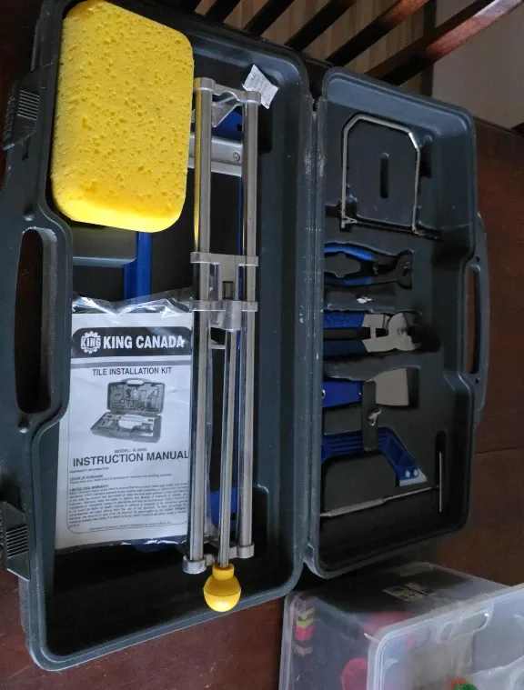 Selling a King Canada tile installation kit! It comes in a case, making it easy to store and transport. Includes an instruction manual to help you get started on your tiling project