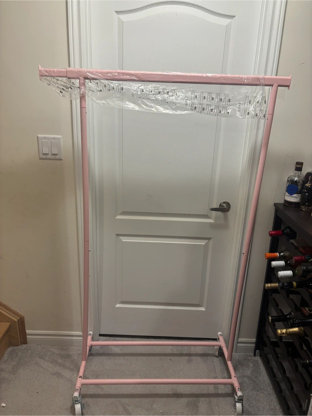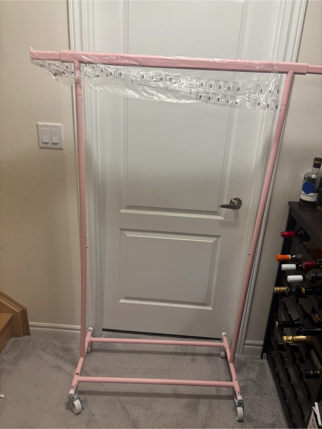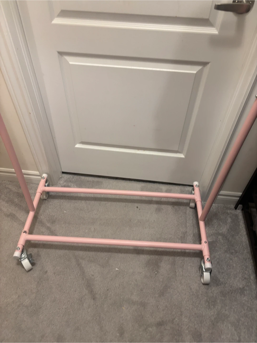 226Selling a SONGMICS clothes rack in pink! It's extendable, so you can adjust the width from 36.2" to 52" (92-132 cm). It also has wheels, making it easy to move around your space. The height is 63" (160 cm).