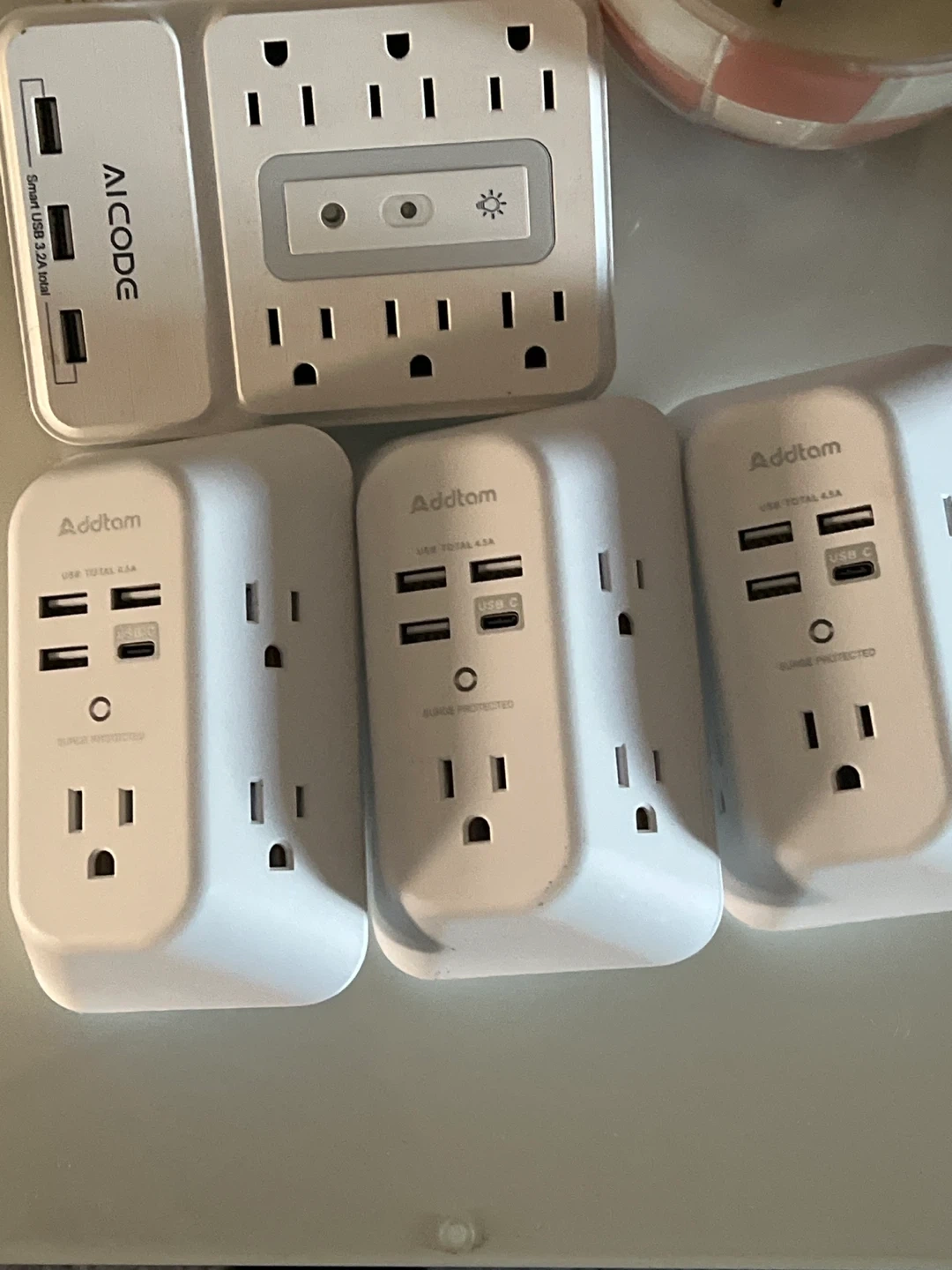 Selling a few surge protector power bars! There are ones from Addtam and Aicode. They all have USB ports as well as regular outlets.