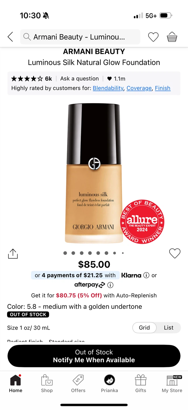 Selling a Giorgio Armani Luminous Silk Perfect Glow Flawless Foundation in shade 5.8. It comes in a 30ml / 1 fl oz size. Retails for $85!