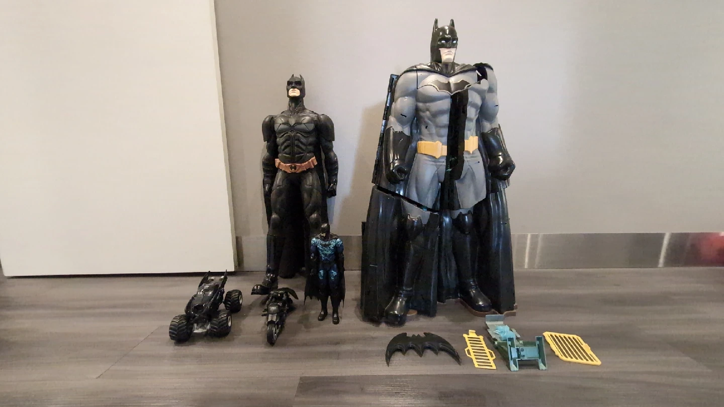 97Selling a collection of Batman action figures and a Batcave playset. Great for any Batman fan or collector! Note: the large batman action figure has a broken left foot.