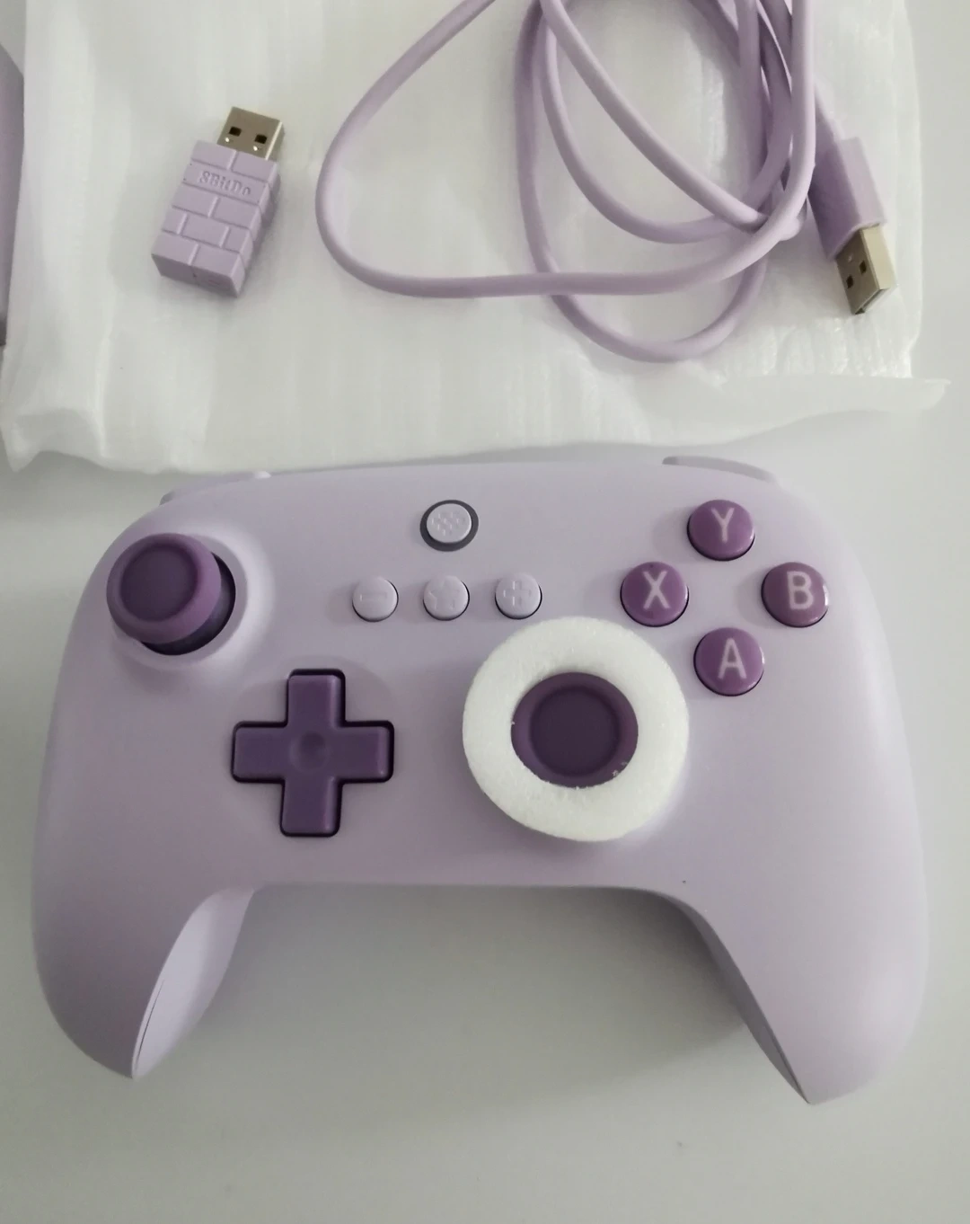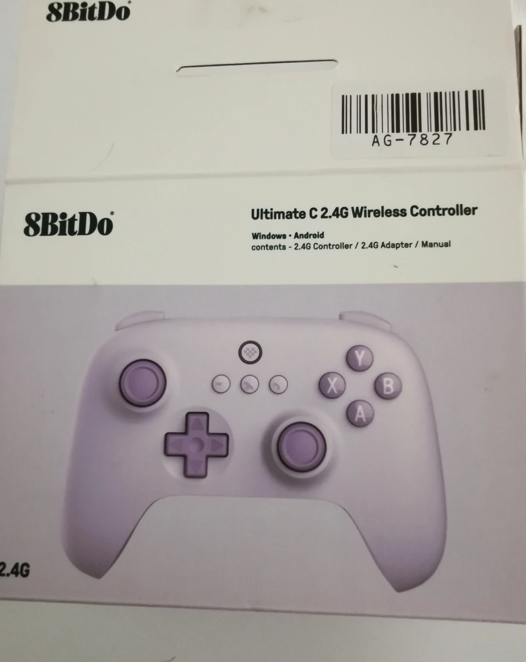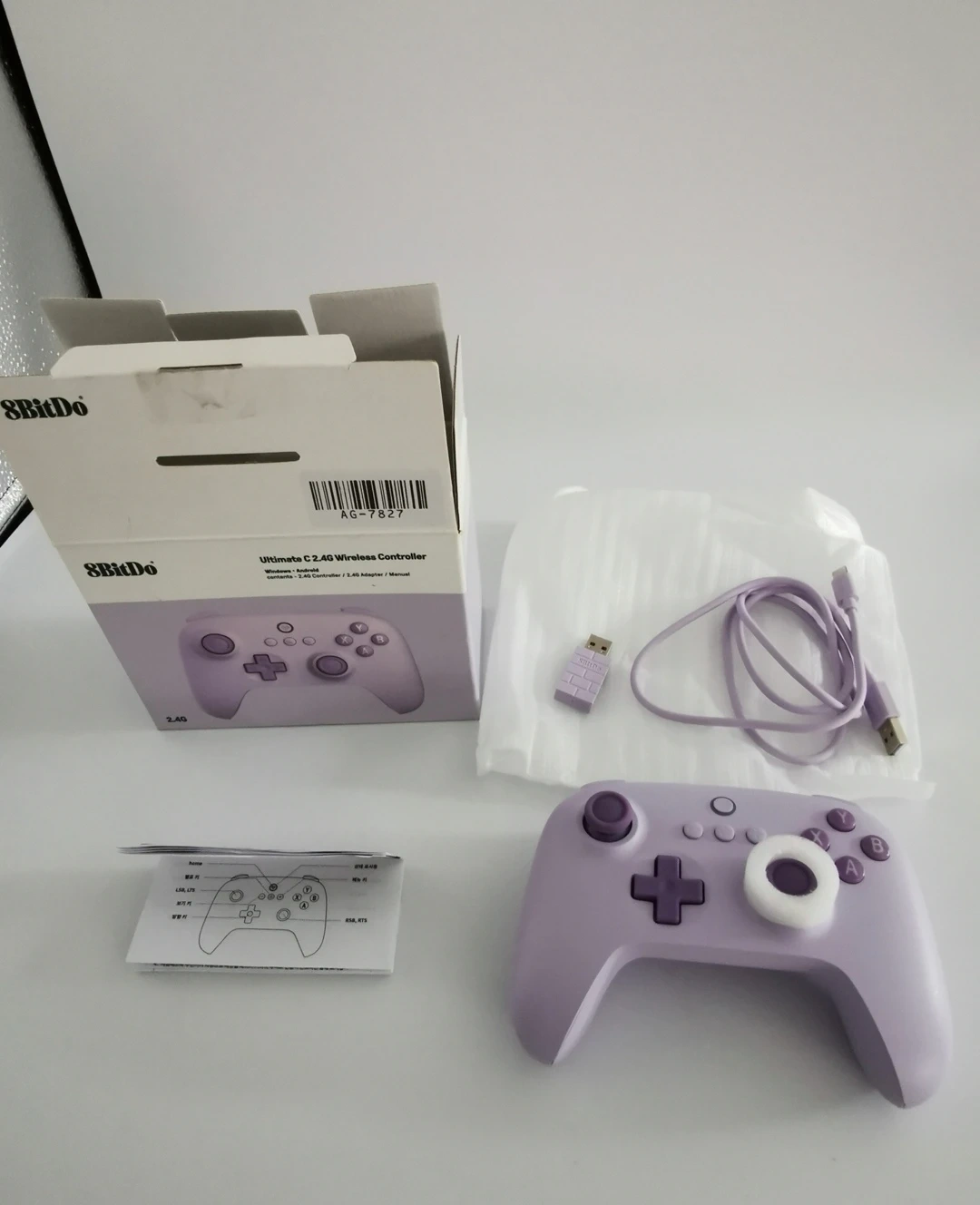 I'm selling a new open box 8BitDo Ultimate C Wireless Controller in purple. This versatile controller works with Windows, Android, and Raspberry Pi devices, offering both 2.4G wireless and wired USB connectivity. The controller includes the 2.4G controller, 2.4G adapter, and manual.