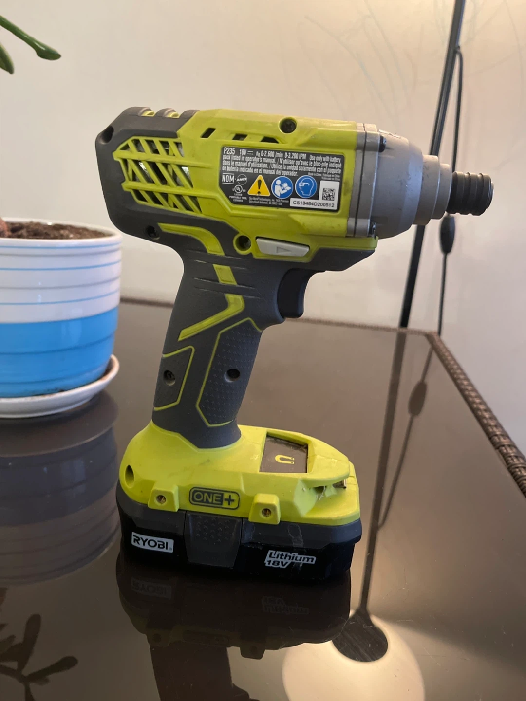 27Selling a Ryobi ONE+ 18V cordless impact driver. It's in good working condition and ready for your next project! The tool uses a Lithium 18V battery. No charger.