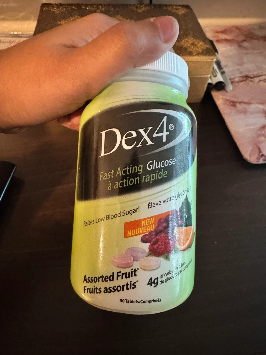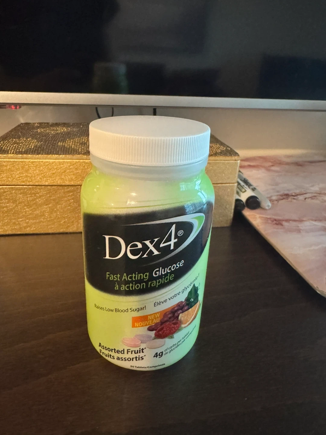 142Selling a bottle of Dex4 Fast Acting Glucose tablets in assorted fruit flavour. These tablets help raise low blood sugar! Each tablet contains 4g of carbs. The bottle contains 50 tablets.