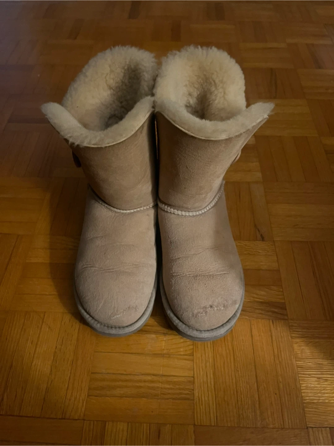 Selling a pair of UGG boots in beige. They are a size 8 and are in good condition, ready for a new home!