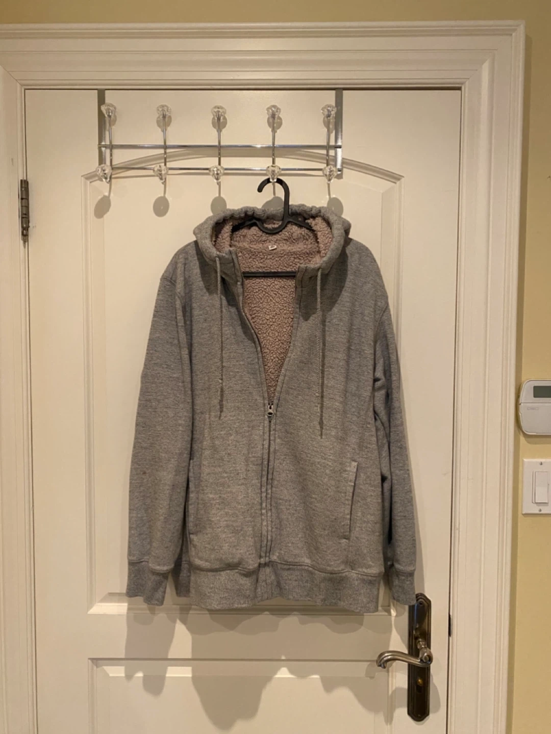 Cozy up with this grey Uniqlo hoodie! It features a soft sherpa lining, perfect for staying warm on chilly days. It's in great condition and ready for a new home!