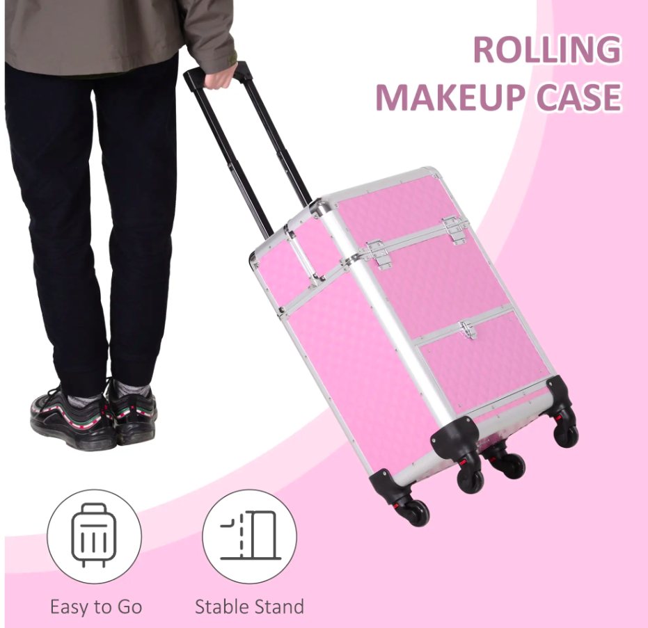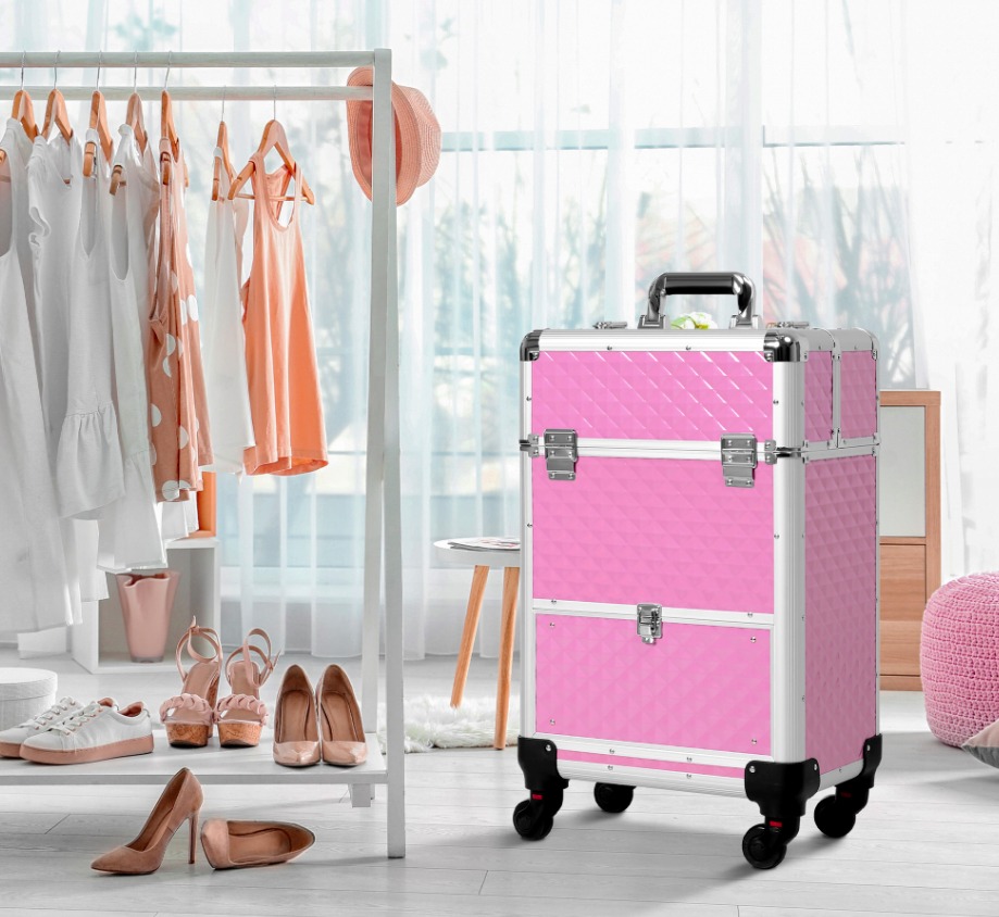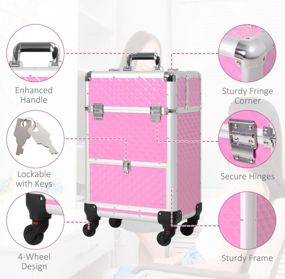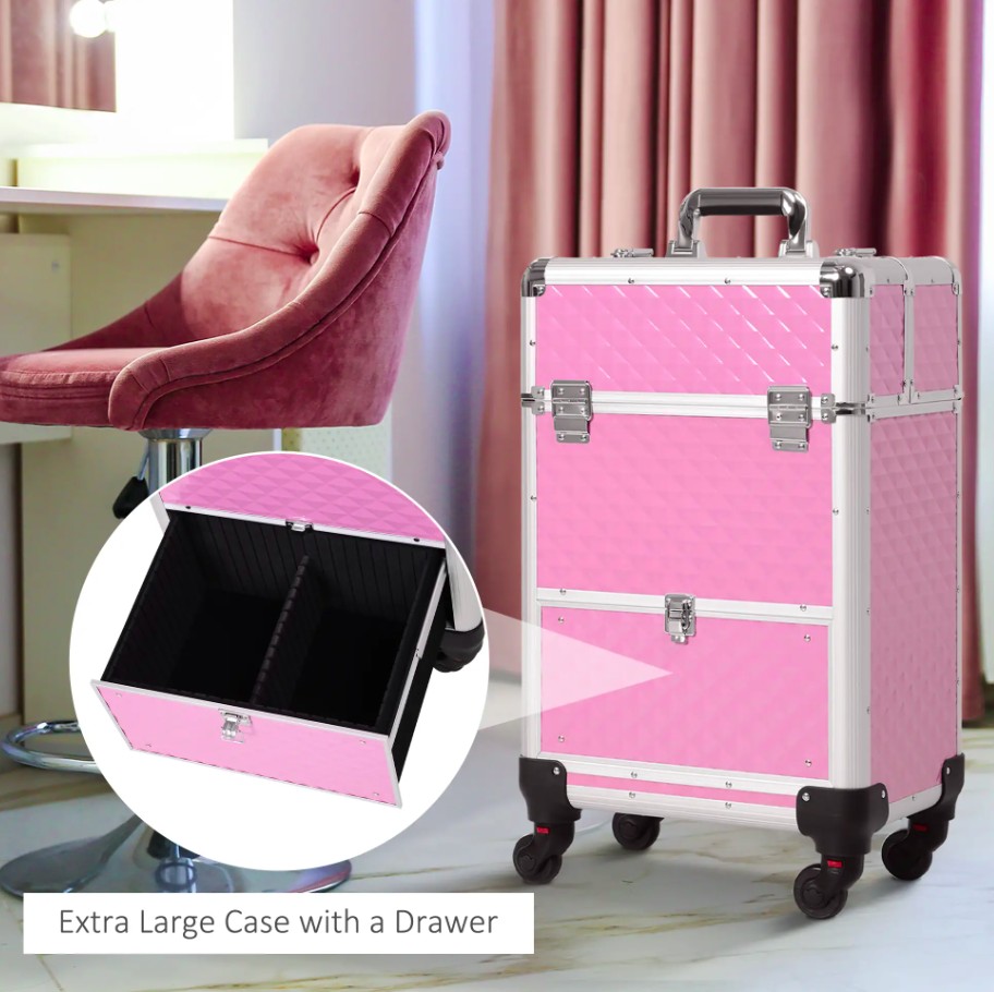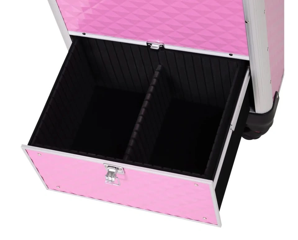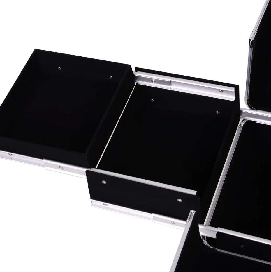 Beauty Box: 4 retractable trays to place small items like lipsticks, polishes, eye-shadows, brushes, etc. A large upper compartment can hold much larger products. The bottom drawer of this travel makeup case is for keeping personal items and accessories, with a detachable divider. The shelf of the bottom drawer can be adjusted according to your needs.