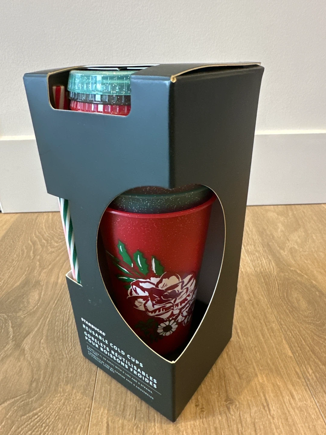 Limited edition! Selling a brand new set of Starbucks reusable cold cups! This set comes in its original box and includes cups with lids and straws. Perfect for adding a little sparkle to your favourite iced drinks!