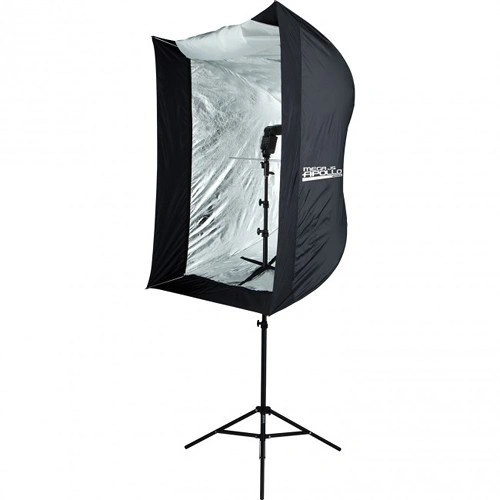 The Westcott Recessed Mega JS Apollo (50 x 50") is a softbox based on an umbrella frame. It needs no speed ring to attach it to a studio flash head. Simply open it, and slide the shaft into the umbrella receptor on the flash head. You can also use the Mega JS Apollo with your on-camera flash by purchasing Westcott's 5015 Shoe Mount Bracket (BH# WESMMA).