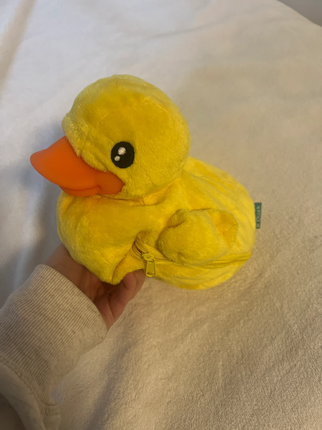 This is a cute yellow duck plush coin purse! It's a soft and cuddly way to keep your change safe. The zipper works perfectly. It's in great condition, ready for a new home