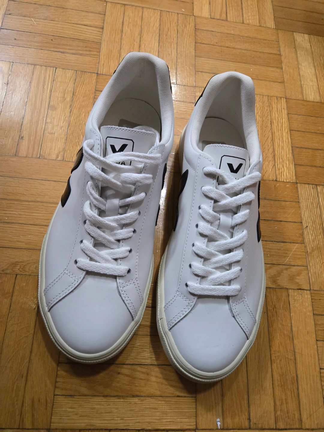 Veja Campo leather sneakers in a white & cream colour with black logo detailing. These are in brand new condition.