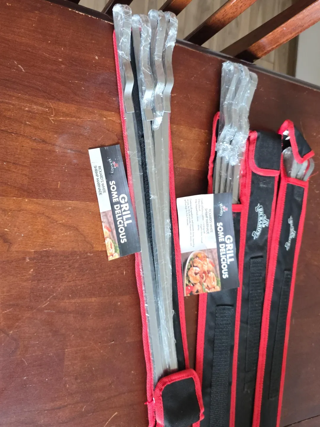 I'm selling a brand new 4 sets of Rickard's grill skewers! Perfect for grilling up some delicious shrimp or veggies. The set comes with a carrying case to keep everything organized and ready for your next BBQ