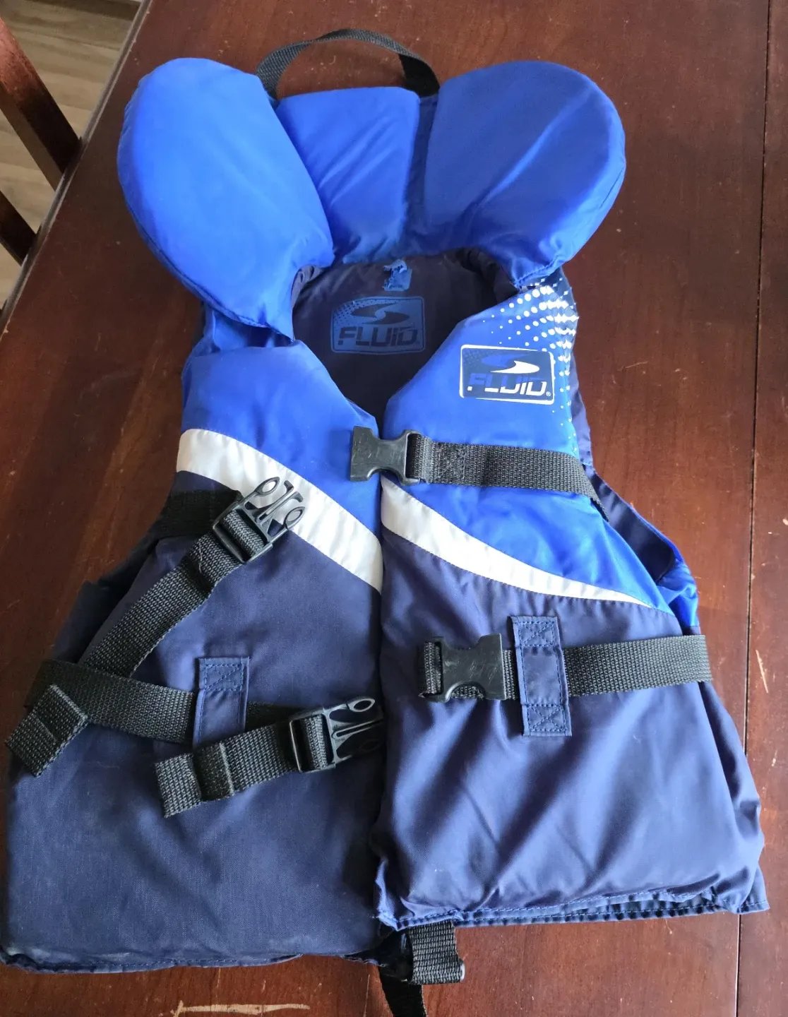 Selling a Fluid youth life jacket in blue. It's in great shape and ready for your little one to use while boating or swimming. Perfect for keeping them safe and secure in the water!