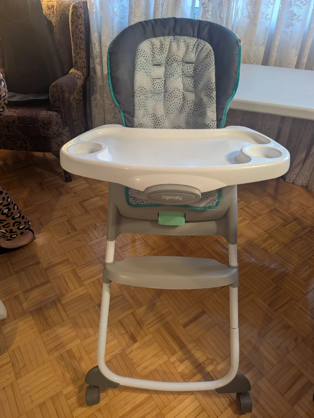 28Selling a gently used Ingenuity high chair. It's in great condition and ready for a new home. Perfect for little ones starting their feeding journey! Chair removes for travel. SELLING FROM SMOKE AND PET FREE HOME.