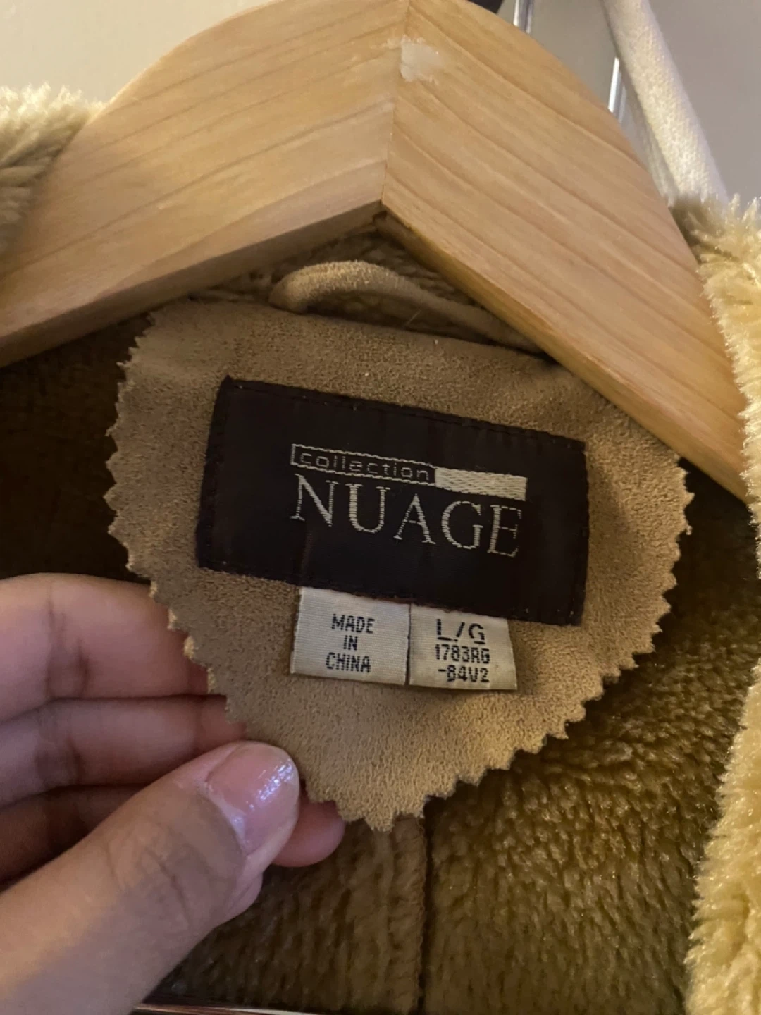 Selling a NUAGE Collection jacket in size L. It's warm and has suede fabric