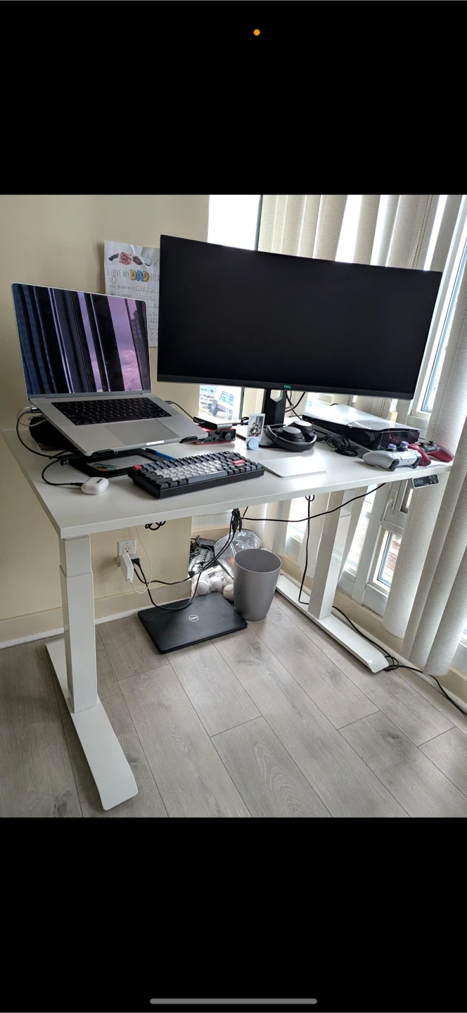 Flexispot adjustable standing desk. It's in great condition and perfect for working from home or gaming! It can be adjusted to different heights to suit your needs