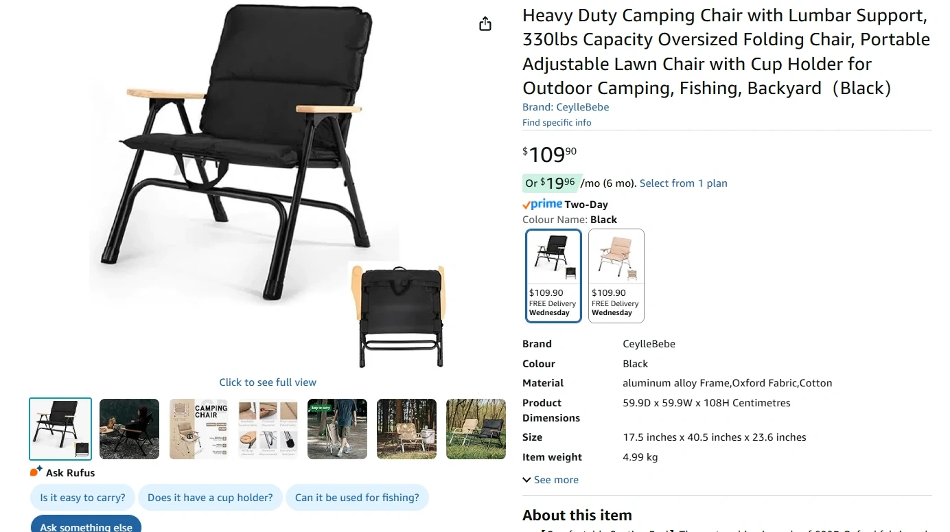 Heavy Duty Camping Chair with Lumbar Support, 330lbs Capacity Oversized Folding Chair, Portable Adjustable Lawn Chair with Cup Holder for Outdoor Camping, Fishing, Backyard(Black) Brand New in the Box/Sealed