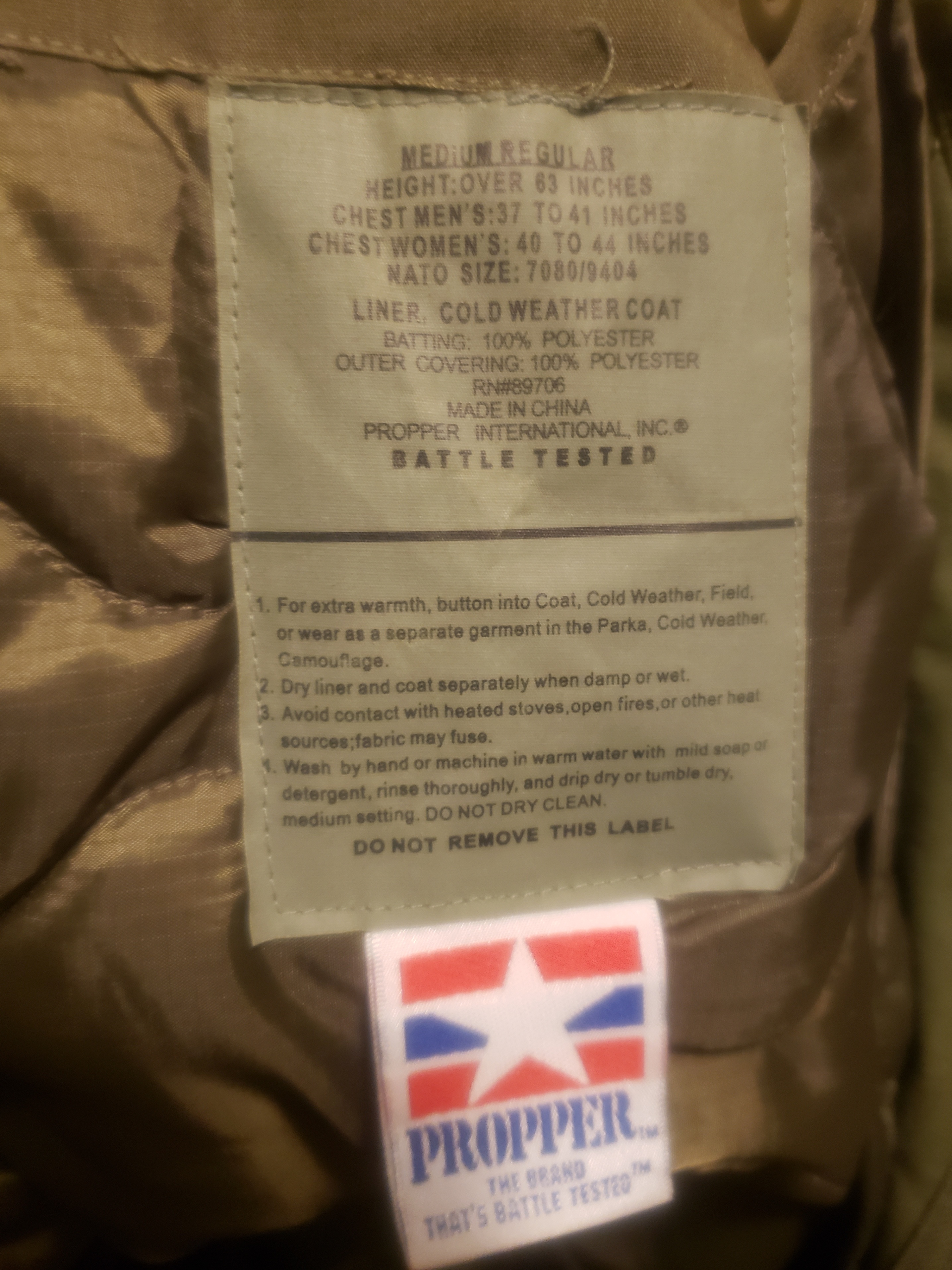 I bought this jacket (made by Propper) years back but never wore it due to the sizing. It's a medium regular size but fits way too big around my body (I'm slim). I'm 5'11" and weigh 155lb. The shoulder fit and arm length are good but it feels like a tent around my torso, even with the drawstrings at the waist and bottom cinched up. If you have more of a stocky build or you're expecting to wear a lot of bulky clothing underneath, it would be just fine. It's a shame because it's a high quality jacket and I love the features and I hate to sell it but if it don't fit, it don't fit. Would be great for camping, working outdoors, hunting or wearing casually.