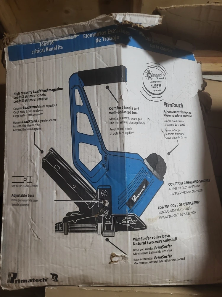 Selling a Primatech 250 nailer. It features a comfort handle and well-balanced tool design. The nailer also has a PrimSurfer roller base with natural two-way sideshift. Comes in the original box