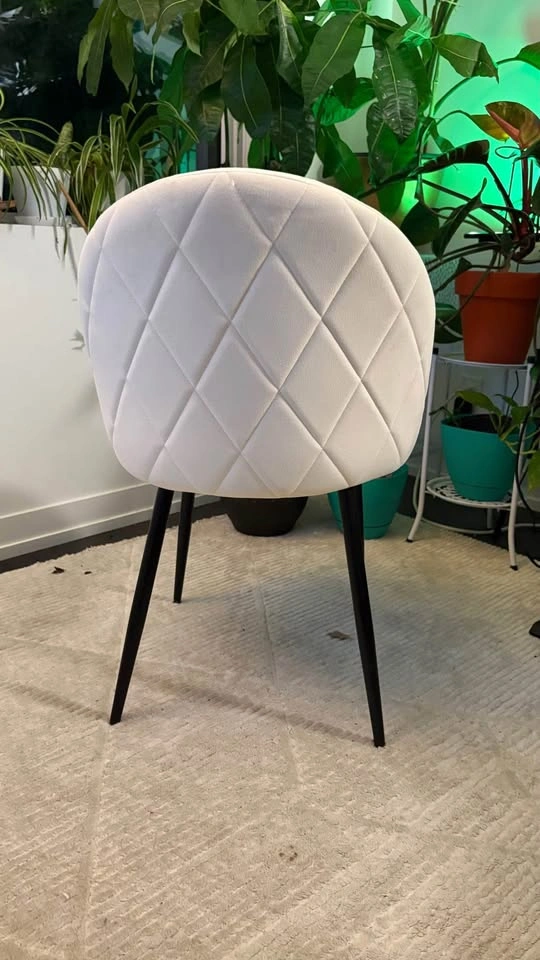 Selling a set of four modern upholstered chairs in soft off-white fabric with black metal legs. Stylish, sturdy, and comfortable — perfect for a dining area, office, or studio setup.