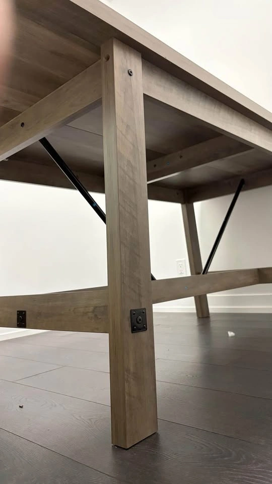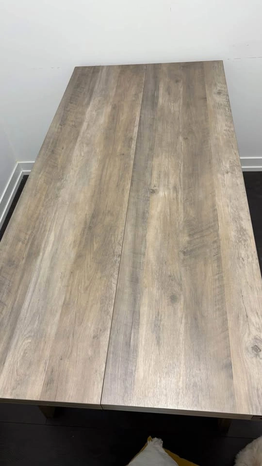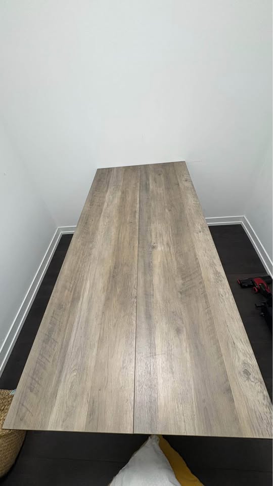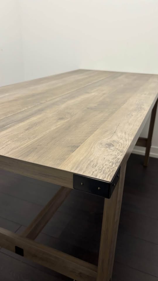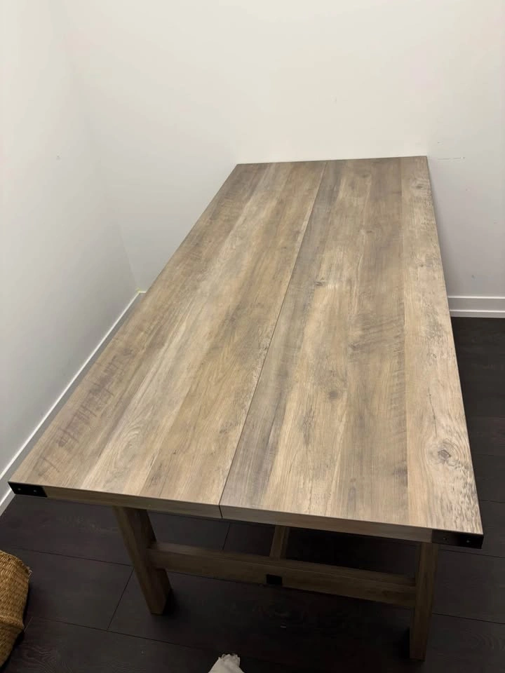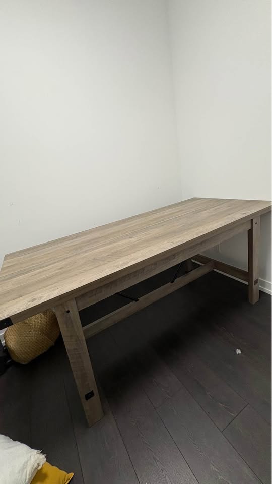 Solid and stylish dining table with a rustic light wood finish. Perfect for a dining room, studio, or workspace — comfortably seats 6 people.