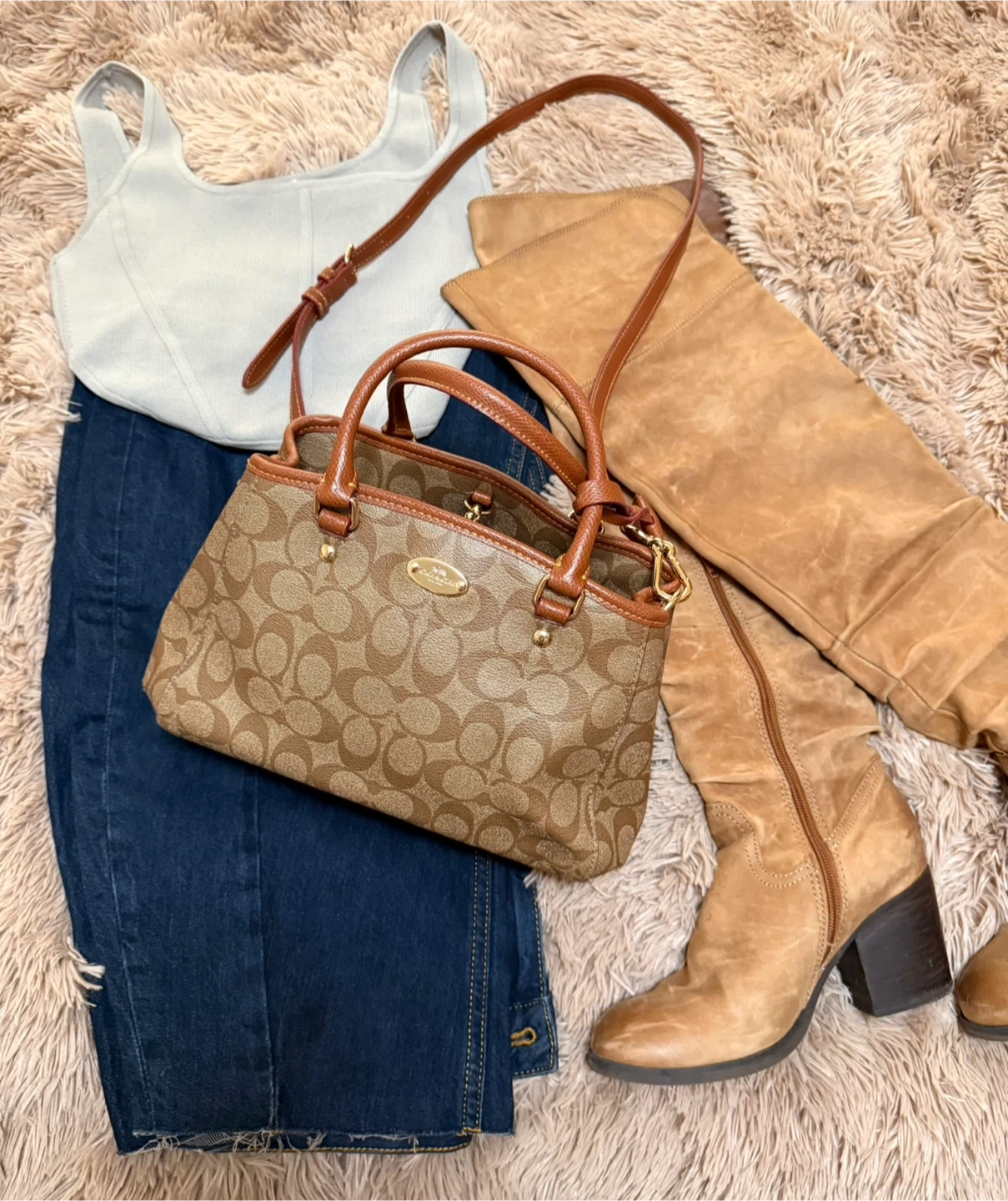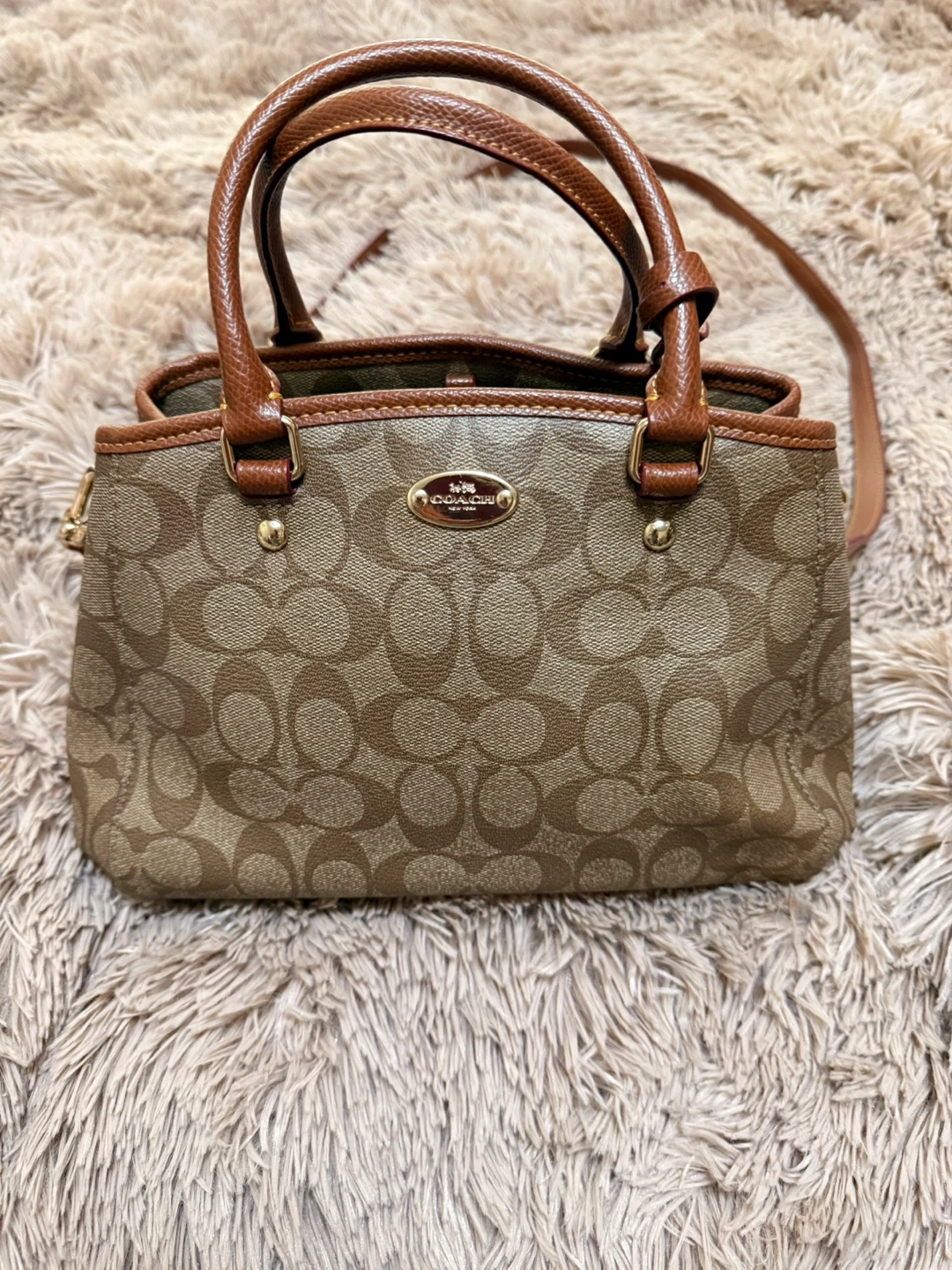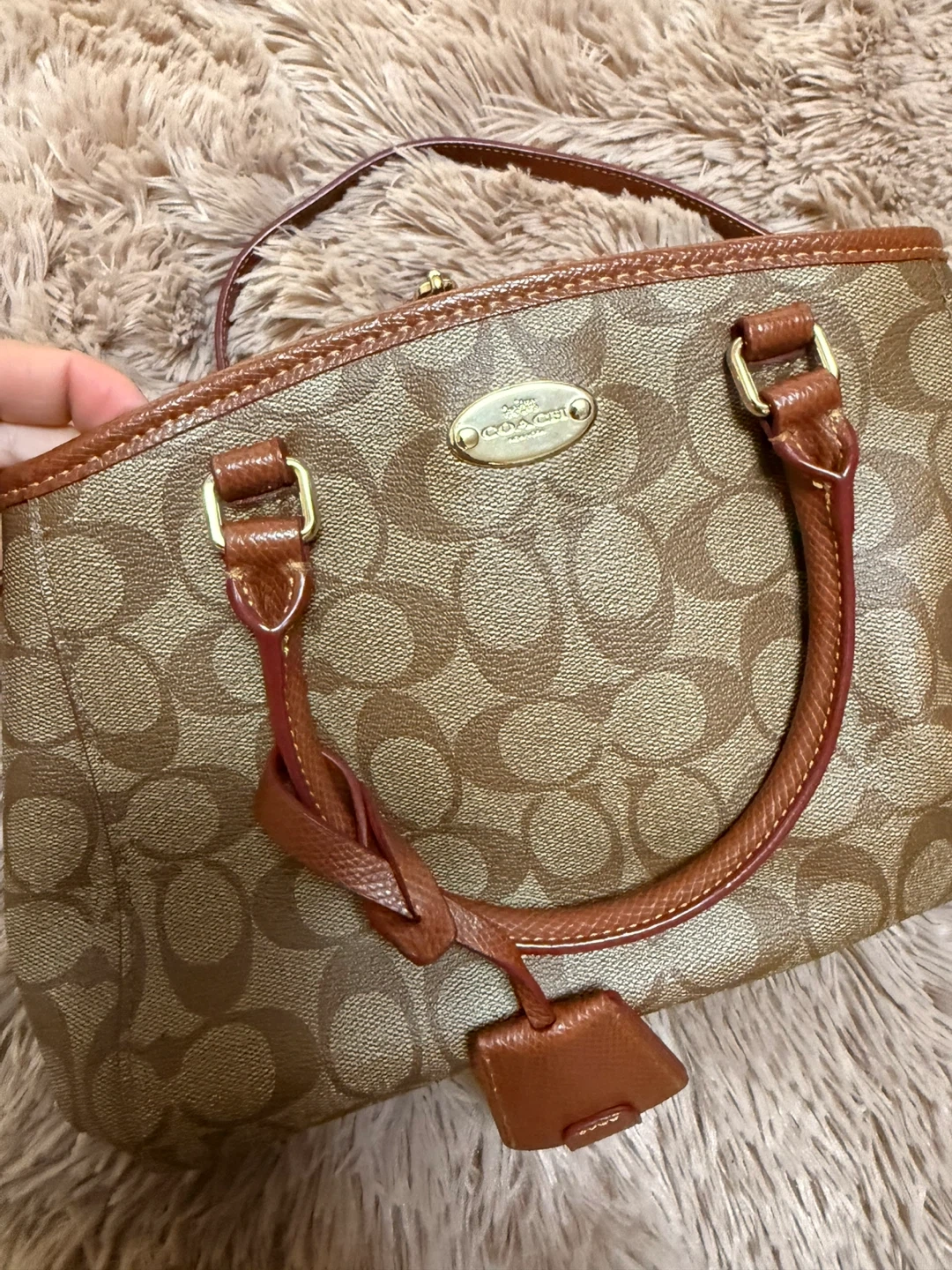97Selling a pre-loved Coach bag in brown signature print. It has an adjustable strap that allow you to wear it as a cross body bag! I carried it couple of times. You can dress it up or down, perfect for everyday use