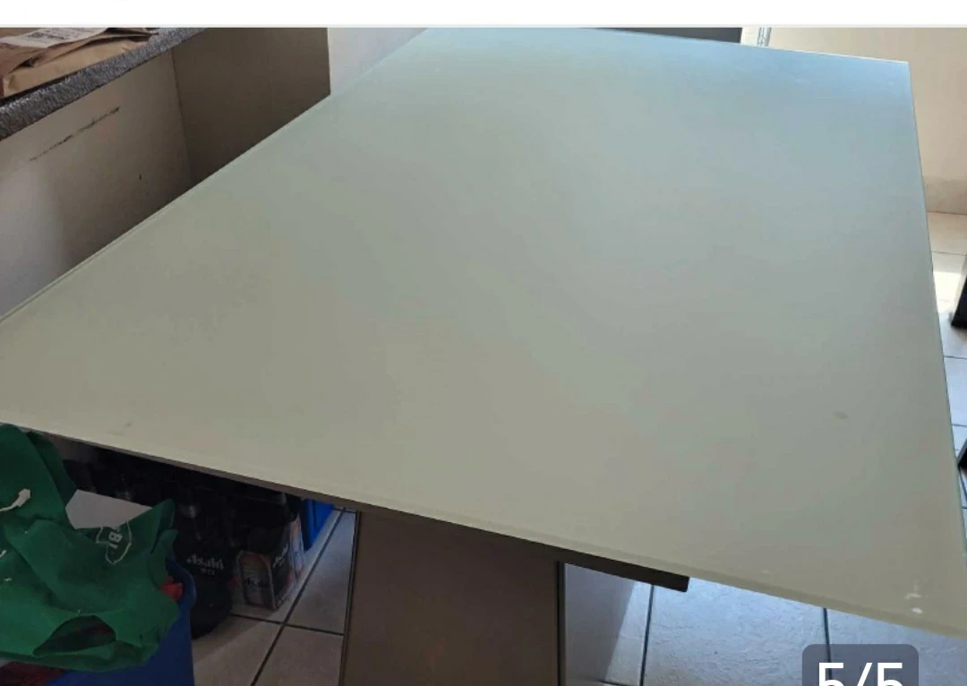 π₯ WHITE GLASS TABLE TOP WITH STEEL BASE