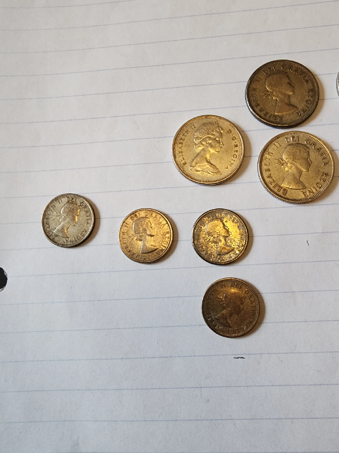 I'm selling this coins from Canada who's ever in for colecction there's 5 coins of 25 cents and there's 4 coins of 10 cents please feel free to reach out