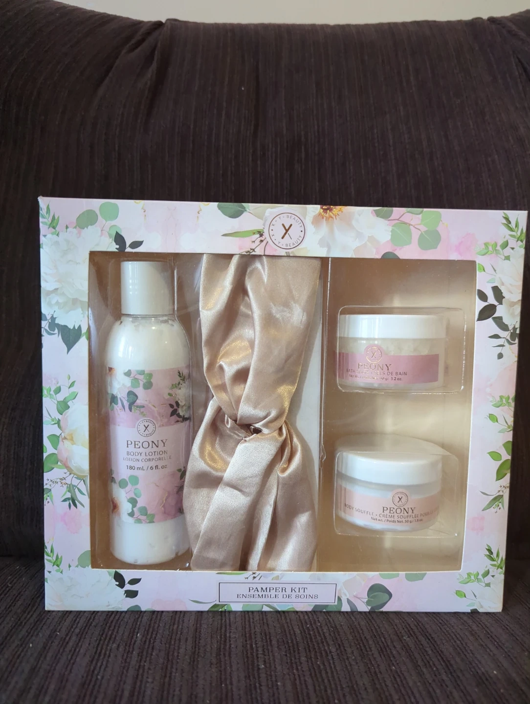 65Selling a Y Beauty Peony Pamper Kit! The kit includes body lotion (180 mL/6 fl oz), bath salts (50 g/1.8 oz), and body souffle (50 g/1.8 oz). Perfect for a little self-care