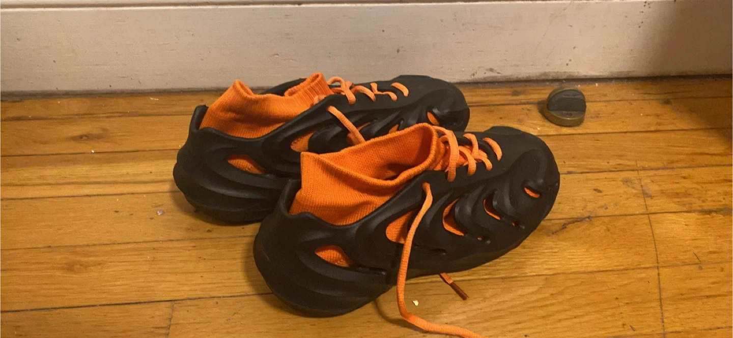 Selling a pair of Adidas AdiFOM Q shoes in black and orange. They are in good condition and are a US women’s size 8. These shoes are known to be comfortable, and stylish.