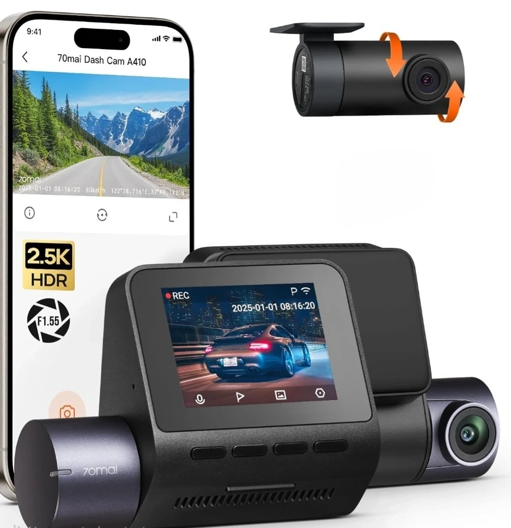 Selling a 70mai Dash Cam A410. It records in Ultra HD 2.5K front and 1080P rear, ensuring no detail is missed, even in challenging light or disputed incidents. It also has super night vision, capturing critical details like license plates with precision