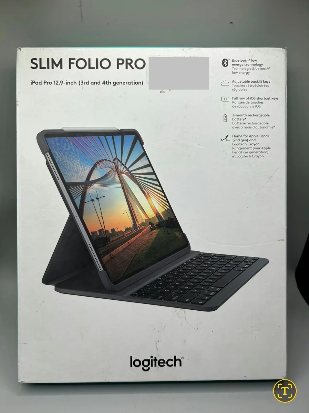 Selling a Logitech Slim Folio Pro keyboard case for the 12.9-inch iPad Pro (3rd and 4th generation)! It's in great shape and comes with the box. Features include Bluetooth low energy, adjustable backlit keys, a full row of iOS shortcut keys, and a 3-month rechargeable battery. It also has a home for the Apple Pencil (2nd gen) and Logitech Crayon
