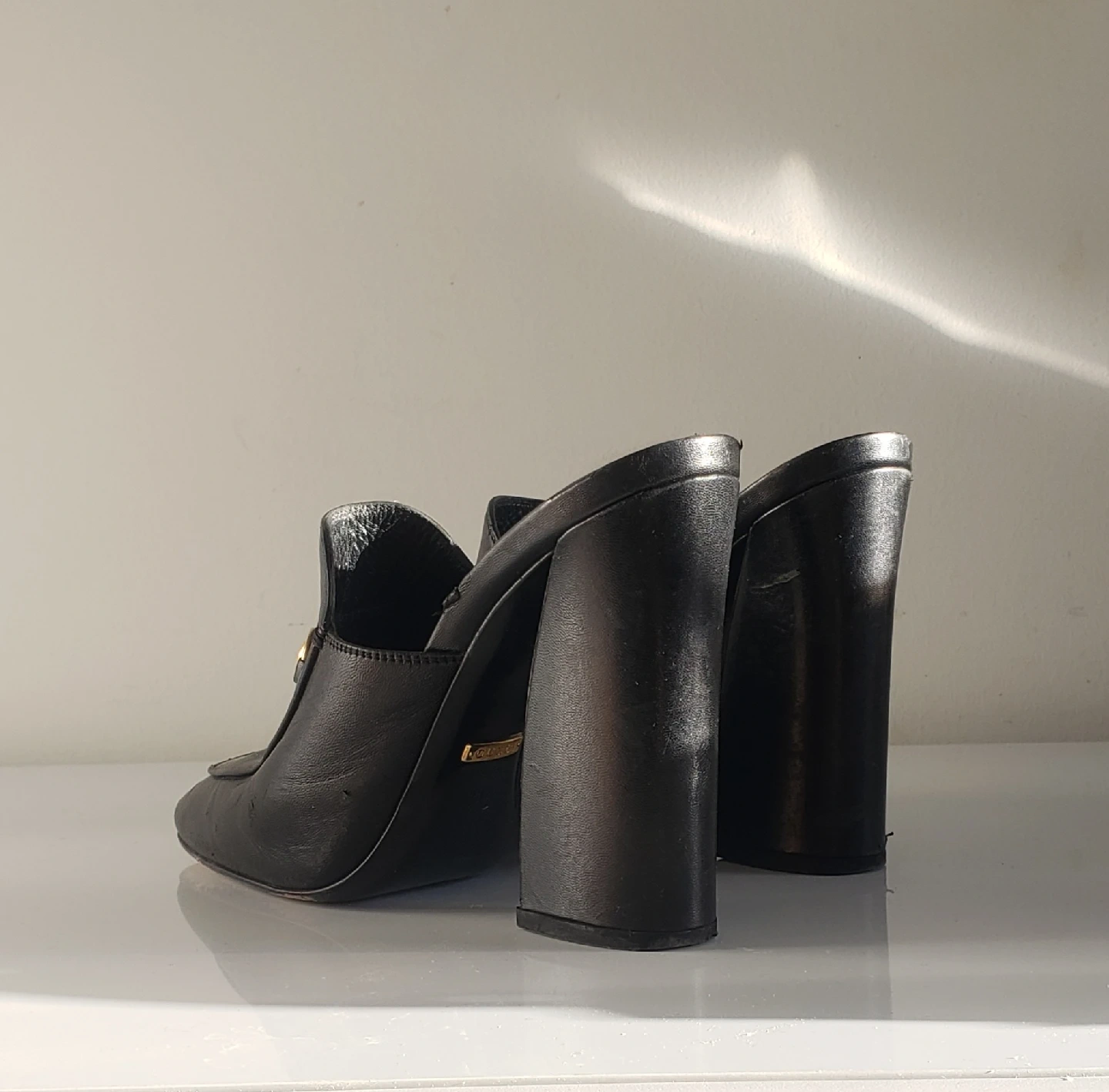 Gucci Black Leather Clog Heels Size 38