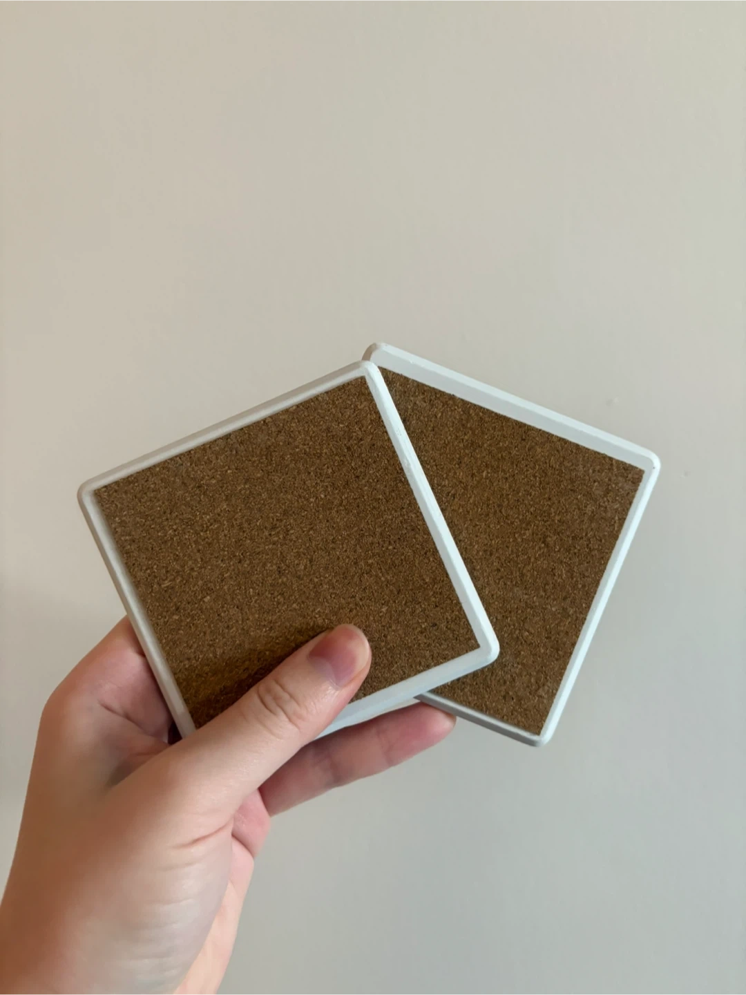 These two coasters have a ceramic top and a wooden base. Since I have too many coasters, these two were barely used.