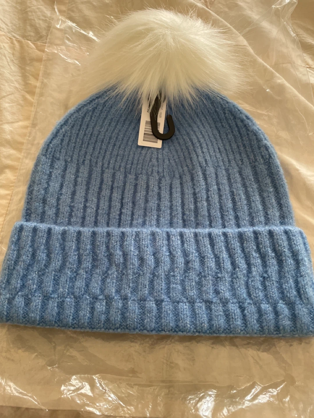 Selling a brand new Reitmans knit beanie! It's a lovely light blue colour and has a cute white pom pom on top. The tag is still attached, and it's in perfect condition. Originally bought for $26.50