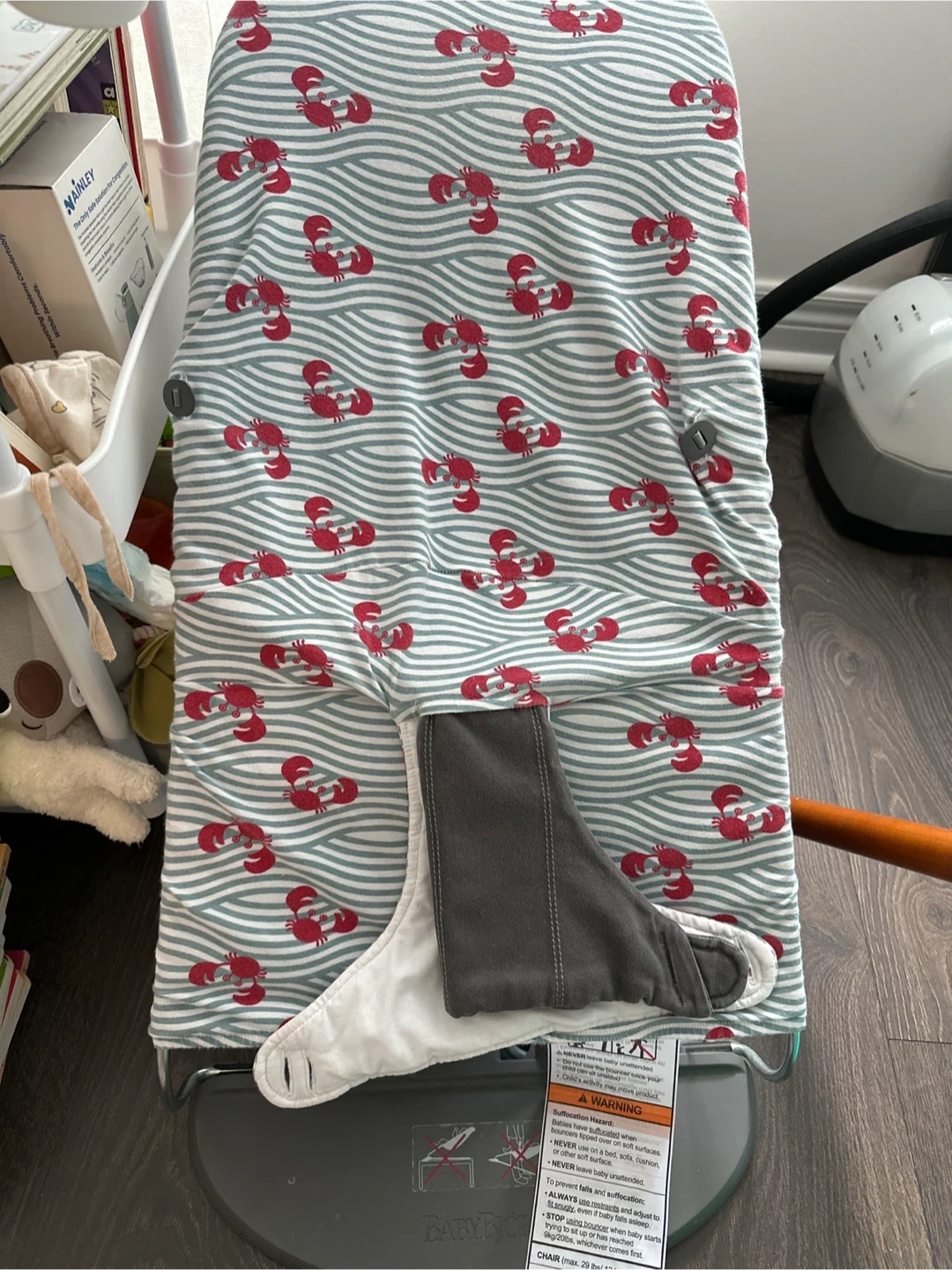 Selling a BabyBjörn bouncer with a cute lobster print! It's in great condition and ready for a new little one. The bouncer provides a safe and comfortable spot for your baby to relax and play. It's lightweight and easy to move around the house