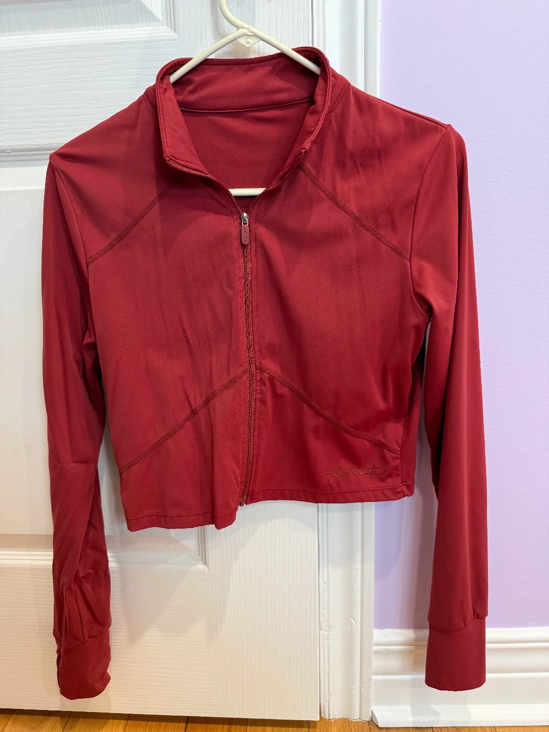 Selling an Athleta long sleeve jacket in a beautiful maroon colour. It's in great condition and perfect for layering or wearing on its own for workouts or casual outings. The material is comfortable and provides a nice fit.