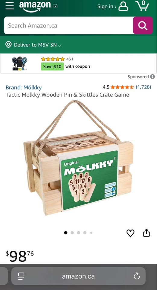 1 / 21 / 2Buy & SellMolkky wooden pin and skittles crate game 🥕Molkky wooden pin and skittles crate game 🥕$25Bought this summer: played it once. Moving and can’t take it with me.WHERE TO MEETCheck LocationView MapSELLERKay GWest Queen West79678 reviews0 chats·0 favorites·5 viewsSEND CHAT TO SELLERHi Kay G! I’m interested in your listing.Hi Kay G! I’m interested in your listing.Get the Karrot app to chatSign In to chat
