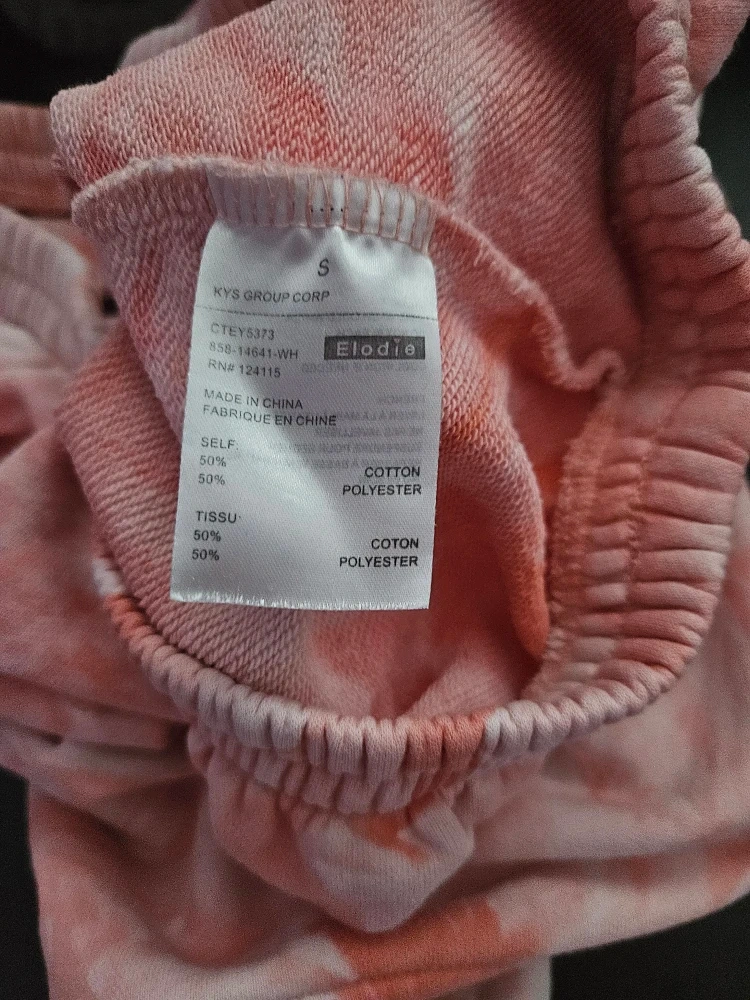 Selling a cute Elodie tie-dye pullover! It's a size small and made of 50% cotton and 50% polyester. The colours are a lovely mix of pink and white, perfect for a casual, comfy look